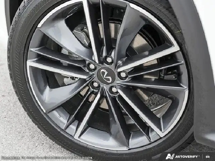 • Radio: INFINITI InTouch Navi Dual Display System -inc: INFINITI InTouch services telematics included for 4 years (remote engine start, door lock/unlock from smartphone, automatic collision notification and emergency call), upper 8" and lower 7" HD touch screens, Siri Eyes Free, wireless Apple CarPlay, Android Auto, HD radio technology, SiriusXM radio w/advanced audio features and 90-day complimentary trial, Bose 12-speaker performance series audio, navigation w/3D building graphics, 5 year complimentary access to premium traffic and MapCare, SiriusXM Traffic w/3 month complimentary trial access to real-time traffic information, SiriusXM Travel Link w/3 month complimentary trial access to weather, fuel prices, stock prices, sport scores, movie listings and parking, INFINITI voice recognition, Wi-Fi hotspot included for 3 months or 3GB, active noise cancellation, rear centre console type-C USB port and wireless charging pad