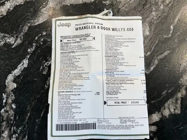 2025 Jeep Wrangler Willy’s, blue ox base plate ready to flat tow behind your motorhome. Full extra set of rims and tires. Never been off road or in mud or snow. Call Jimmy 780-621-7616. No solicitors . Only 10,400km , $58,000