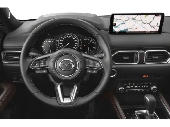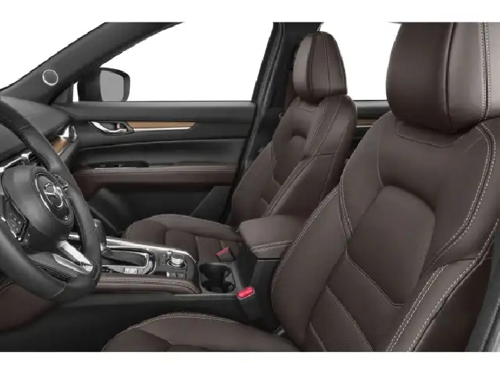 The 2025 Mazda CX-5 Signature in Gray with All-Wheel Drive offers an exceptional driving experience with balanced handling and precision. Its striking exterior is complemented by alloy wheels that enhance its bold stance. Inside, the brown leather seats and leatherette door trim create an inviting atmosphere, enriched by luxury touches like a leather steering wheel and gear shifter. Stay comfortably connected with features such as a heads-up display, smart device integration, and a cutting-edge navigation system, which ensure you are well-guided throughout your journey. Safety and convenience are expertly handled with driver assistance features like adaptive cruise control, lane assist, and parking sensors. This SUV is perfect for families and adventure seekers who seek both style and functionality. Reach out to our dealership today to learn more about the Mazda CX-5 Signature and make it yours!