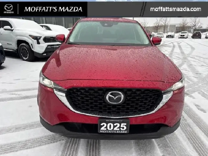 The excellent power delivery, superior handling and a swanky interior help propel this 2025 Mazda CX-5 to new heights among its competitors. This 2025 Mazda CX-5 is fresh on our lot in Barrie.