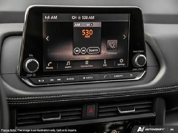 - Radio: NissanConnect -inc: 6 speakers plus 2 tweeters, Apple CarPlay integration, Android Auto, 2 front USB type C, 8" colour touch screen display, voice recognition, SiriusXM satellite radio w/3-month trial, NissanConnect Services Telematics (remote engine start, door lock/unlock from smartphone, automatic collision notification and emergency call) w/3-year premium package trial and 5-year select package trial and Wi-Fi hotspot included for 3 months or 3GB trial (whichever comes first)