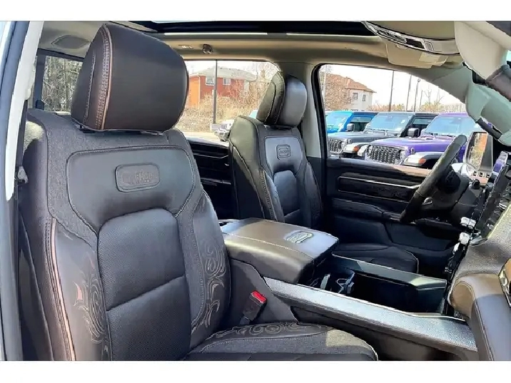 2025 Ram 1500 Longhorn Crew Cab 4X4 | 3.0L Hurricane High Output Twin Turbo I-6 | Bright White | FULLY LOADED | Level A Equipment Group | Dual-pane Panoramic Sunroof | Bison Brown Leather Interior | Heated & Ventilated & Massaging Leather Bucket Seats | Uconnect 14.4 Touchscreen Display w/ Navigation | 19-speaker Harman/Kardon High Performance Audio System | Front Passenger Interactive Display | Power Running Boards | Hands-free Active Driving Assist System | 360 Surround View Camera System | Dual Smartphone Qi Wireless Charging Pads | Wireless Apple CarPlay & Android Auto | Heated Steering Wheel | Remote Start | Heads-up Display | Digital Rearview Mirror | Smartphone Key Capable | Mopar Spray-in Bed Liner | Class IV Hitch Receiver | Trailer Brake Control | 3.92 Rear Axle Ratio | RamBox Cargo Management System