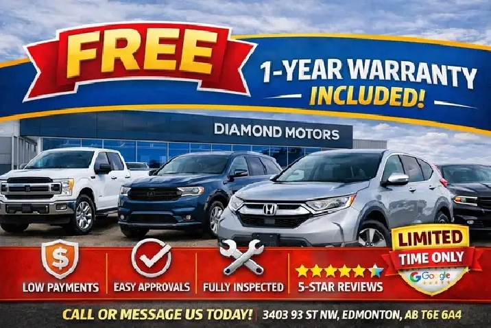 Phone to schedule an appointment @ 587-444-3300 or simply browse our inventory online www.diamondmotors.ca or come and see us at our location at