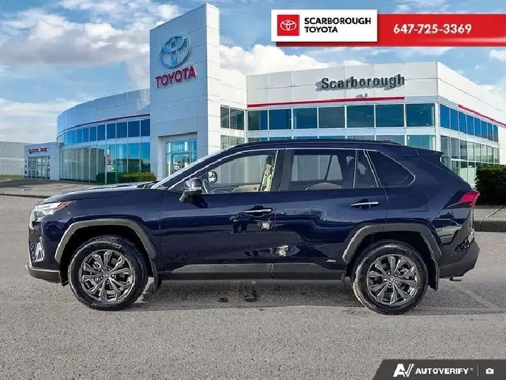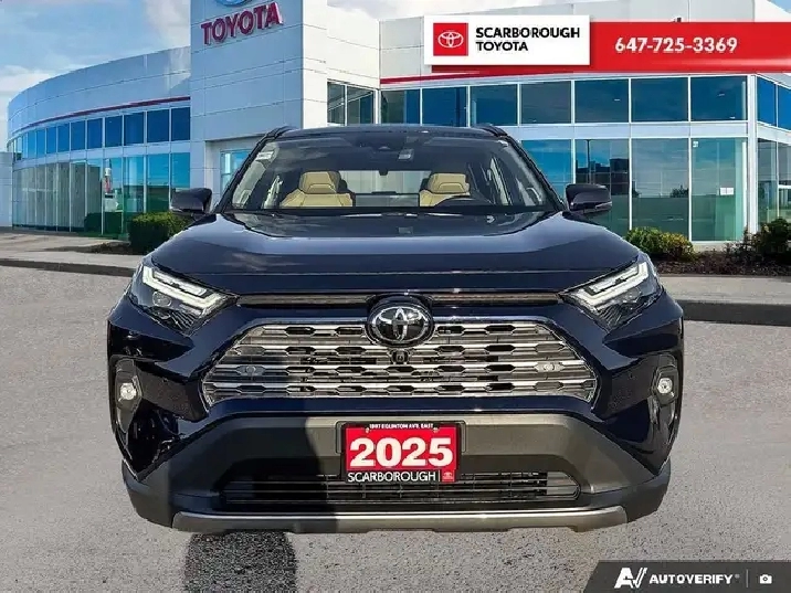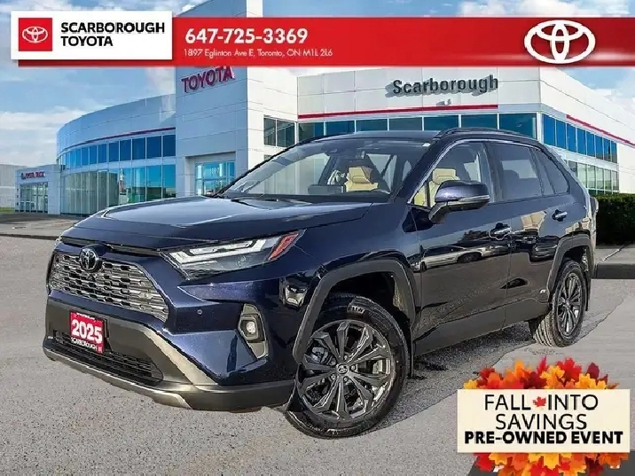 Check out this 2025 Toyota RAV4 Hybrid Limited AWD with 17,310 KMS, finished in a sleek dark blue exterior. Packed with features such as a Back-Up Camera, Heated Leather Steering Wheel, Bluetooth Connection, Cruise Control w/Steering Wheel Controls, Sunroof, Toyota Safety Sense (TSS) 2.5 , Rear Cross Traffic Brake (RCTB), and more!