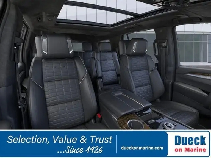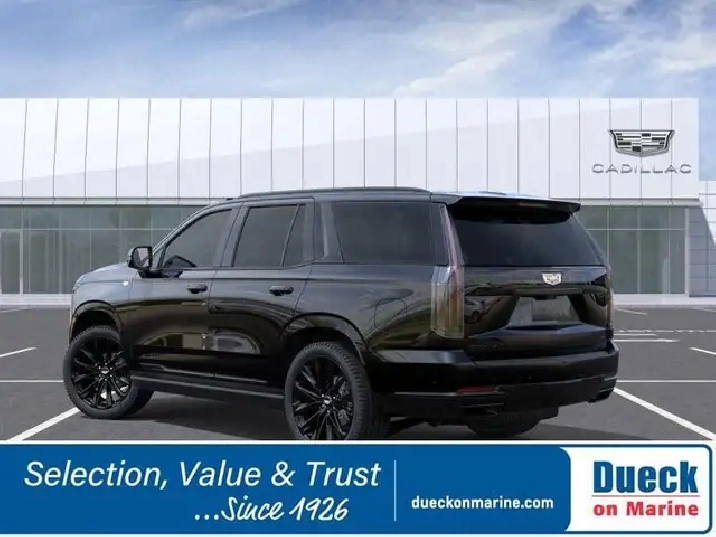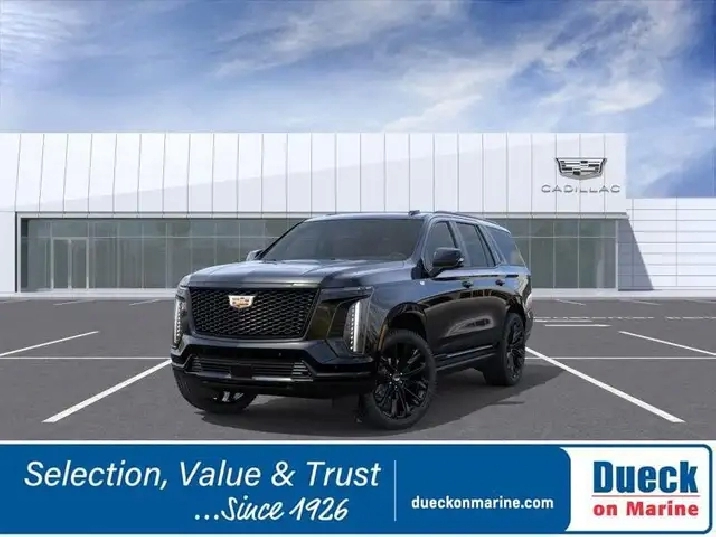 Driving our 2026 Cadillac Escalade Sport Platinum 4WD with the Onyx Pack can feel like a dream come true in Black Raven! Powered by a 6.2 Litre V8 supplying 420hp to a 10 Speed Automatic transmission so you can go fast and tow strong. This Four Wheel Drive SUV also returns approximately 13.1L/100km on the highway and rides through your world with an adaptive air suspension and Magnetic Ride Control for composed capability. Crafted to impress, our Escalade boasts LED lighting, a panoramic sunroof, power running boards, a hands-free liftgate, 24-inch wheels, and dark details from our Onyx Pack.Our Sport Platinum cabin raises the bar for family travel with heated/ventilated massaging leather front seats, heated second-row seats, a power-folding third row, a heated-leather power steering wheel, and tri-zone automatic climate control. A high-tech haven from busy days, the interior further shows off with a 55-inch infotainment display, rear-seat entertainment, AKG audio, full-color navigation, wireless Apple CarPlay®/Android Auto®, Bluetooth®, WiFi compatibility, and wireless charging.Compelling Cadillac safety cues like hands-free Super Cruise compatibility, a head-up display, a digital rearview camera, blind-spot assistance, lane-keeping assistance, automatic braking, HD surround vision, forward collision alert, and more help protect you as you go. With all that, our well-appointed Escalade Sport Platinum puts your family first! Save this Page and Call for Availability. We Know You Will Enjoy Your Dueck on Marine Test Drive Towards Ownership! Dueck on Marine is located at 400 S.E. Marine Drive in Vancouver BC. We look forward to helping you trade-in your old car or SUV, helping you find your next new or used vehicle and then helping you complete the purchase with the financing and purchase option that is best for you. Dealer #8430. Taxes and $699 Administration fee excluded in prices.While every reasonable effort has been made to ensure the accuracy of the details and pricing on this website, errors may occur. Please contact the dealership to confirm all information and pricing.