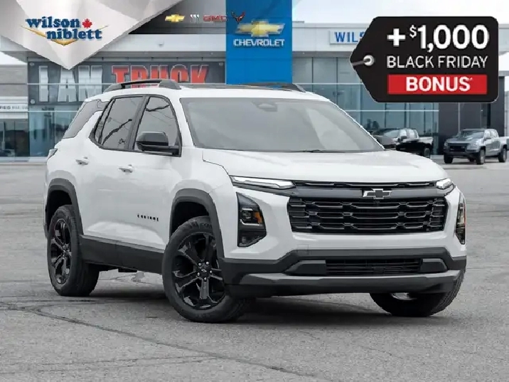 Midnight Edition- HD Surround Vision | Panoramic Sunroof | Heated Steering Wheel | Evotex/ Heated Front Seats | Driver's Safety Alert Seat | Wireless Charging | Remote Start | Rear Camera Mirror | Traffic Sign Recognition | Rear Park Assist | Lane Keep Assist | Auto Emergency Braking | Forward Collision, Lane Change, Blind Zone and Rear Cross-Traffic Alerts | Adaptive Cruise Control |12V Power Outlet | Wireless Apple Carplay/ Android Auto | Front Fog Lights | All Weather Floor Liners Experience a perfect balance of style, comfort, and cutting-edge tech with the 2026 Chevrolet Equinox LT AWD Midnight Edition in Summit White. Designed for drivers who demand more from every journey, this SUV delivers confidence, safety, and connectivity in a sleek, modern package. The Midnight Edition styling elevates the Equinox with dark accents and bold details that turn heads on every street. Glide through your day with HD Surround Vision, Rear Camera Mirror, and Front Fog Lights that enhance visibility in any condition. The Panoramic Sunroof invites natural light into the cabin, complementing the luxurious Evotex heated front seats and heated steering wheel for unmatched comfort. Stay connected and powered on the go with wireless Apple CarPlay and Android Auto, wireless charging, and a convenient 12V power outlet, while remote start ensures your Equinox is ready before you even step inside. Chevrolets advanced safety suite keeps you secure with Drivers Safety Alert Seat, Rear Park Assist, Lane Keep Assist, Auto Emergency Braking, and a full array of collision and blind-spot alerts, including Forward Collision, Lane Change, Blind Zone, and Rear Cross-Traffic Alerts. Adaptive Cruise Control makes highway driving effortless and stress-free. From its stylish Summit White exterior to its tech-packed interior, the 2026 Equinox LT AWD Midnight Edition is built to impress, protect, and elevate every drive. Step into the 2026 Chevrolet Equinox LT AWD Midnight Editionwhere modern design meets intelligent technology. Wilson-Niblett Motors has been proud to serve York Region for more than six decades! We want to thank you, our loyal customers, for making us the success we are today! If you are part of our "family", you already know about our commitment to outstanding customer service and satisfaction and to being your dealership of choice in the region. You can visit our showroom at 10675 Yonge Street in Richmond Hill, which is just south of Yonge and Elgin Mills and one of our knowledgeable product specialists will be happy to assist you. Wilson Niblett price is inclusive of a Wilson-Niblett Exclusive purchase credit of $1,500 and a GM Black Friday Bonus of $1,000. Offers valid until December 1st, 2025. .