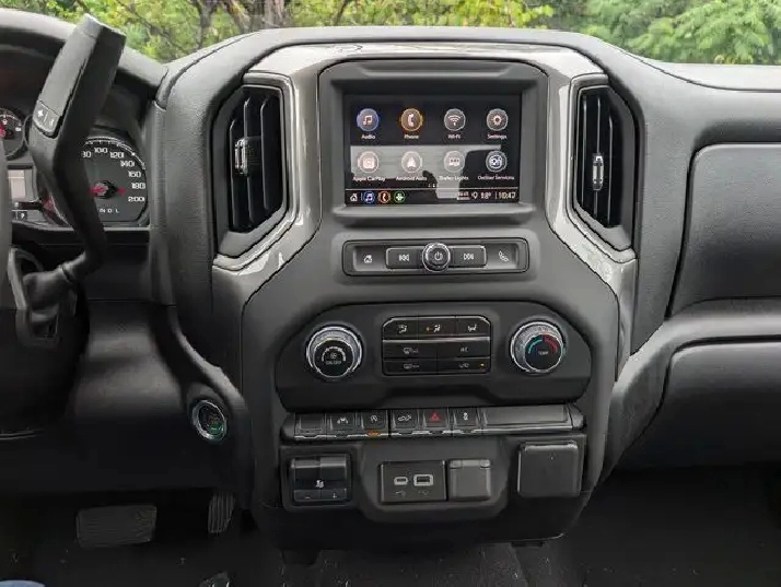 - AUTO-LOCKING REAR DIFFERENTIAL,TRANSMISSION 8-SPEED AUTOMATIC ELECTRONICALLY CONTROLLED with overdrive and tow/haul mode. Includes Cruise Grade Braking and Powertrain Grade Braking (STD),REAR AXLE 3.42 RATIO,LPO MOULDED SPLASH GUARDS BLACK (dealer-installed),LPO BLACK TAILGATE LETTERING (dealer-installed),LPO ASSIST STEPS - 4 BLACK - ROUND (dealer-installed),LPO BLACK NAMEPLATES (dealer-installed),ENGINE BLOCK HEATER,TRAILER BRAKE CONTROLLER INTEGRATED,LICENSE PLATE KIT FRONT,LPO BLACK BOWTIE EMBLEM FRONT (dealer-installed) When ordered with (QK2) Multi-Flex tailgate will include Black tailgate bowtie.),TURBOMAX BLACKOUT PACKAGE includes (PDB) Dark Essentials Package LPO (RVS) 4 Black round assist steps LPO (VTA) Black Chrome exhaust tip LPO and (RD5) 20 High Gloss Black painted aluminum wheels.,WHEELHOUSE LINERS REAR,RIPTIDE BLUE METALLIC,LPO DARK ESSENTIALS PACKAGE includes (RIK) Black Silverado nameplates along with where applicable Black Custom/LT/RST/LTZ/High Country/6.2L/Duramax badges LPO (SFZ) Black bowtie LPO and (SB7) Black tailgate CHEVROLET lettering LPO (dealer-installed),LPO BLACK CHROME EXHAUST TIP (dealer-installed),TIRES 275/60R20SL ALL-TERRAIN BLACKWALL,ENGINE 2.7L TURBOMAX (310 hp [231 kW] @ 5600 rpm 430 lb-ft of torque [583 Nm] @ 3000 rpm) (STD),CUSTOM PREFERRED EQUIPMENT GROUP includes standard equipment,CHEVYTEC SPRAY-ON BEDLINER BLACK (does not include spray-on liner on tailgate due to Black composite inner panel),Front Collision Mitigation,Daytime Running Lights,Privacy Glass,ABS,Telematics,Keyless Entry,Heated Mirrors,Front Collision Mitigation,Four Wheel Drive,Turbocharged,Cloth Seats,Lane Keeping Assist,Rear Defrost,Lane Keeping Assist,Front Collision Mitigation,Front Side Air Bag,Adjustable Steering Wheel,Requires Subscription,Bluetooth Connection,Front Collision Warning,Tow Hitch,Back-Up Camera,4-Wheel Disc Brakes,AM/FM Stereo,Rear Head Air Bag,Passenger Air Bag,Stability Control,MP3 Capability,Automatic Highbeams,Floor Mats,Smart Device Integration,Driver Restriction Features,Traction Control,Front Head Air Bag,Split Bench Seat,Tire Pressure Monitor,Auxiliary Audio Input,Lane Departure Warning,Front Collision Warning,Power Steering,Driver Air Bag,Floor Mats,A/C,Rear Bench Seat,Daytime Running Lights,Power Door Locks,Security System,Lane Departure Warning,MP3 Capability,Aluminum Wheels,Telematics,Bluetooth Connection,Pass-Through Rear Seat,Tires - Front All-Season,A/C,Rear A/C,Auxiliary Audio Input,Requires Subscription,Smart Device Integration,Driver Adjustable Lumbar,Front Collision Warning,Remote Engine Start,Power Mirror(s),Keyless Start,Cruise Control,Tow Hooks,Power Driver Seat,WiFi Hotspot,Requires Subscription,Tires - Rear All-Season,Bluetooth Connection,Power Door Locks,Tires - Rear All-Season,Automatic Highbeams,Tires - Front All-Season,Power Windows,Power Windows,Satellite Radio,Power Outlet,Passenger Air Bag Sensor