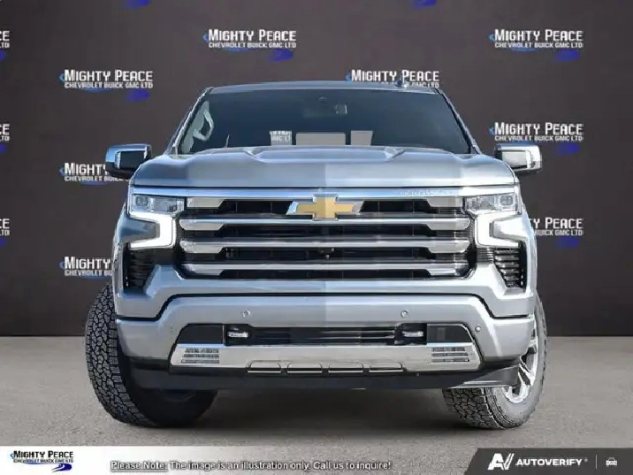 Adaptive Cruise Control, Premium Audio, Power Tailgate, Cooled Seats, Wireless Charging, 360 Camera, Park Assist, Heated Steering Wheel, Remote Start, Trailering Package, Remote Start, Automatic Emergency Braking, Lane Keep Assist Your GM King of the North since 1969! We Deliver! From Our Floor to Your Door! Reliable, adaptable and ready for action, the 2026 Silverado 1500 is your partner in work and adventure. The 2026 Chevrolet Silverado 1500 delivers full-size pickup performance with a polished interior and smart technology to meet the demands of both work and play. Inside you’ll find an interior designed for comfort and connectivity, outfitted with modern amenities and a layout that supports both productivity and leisure. With such versatility, the Silverado 1500 stands ready to take on the tough jobs and the long drives in equal fashion. This Silver sought after diesel crew cab 4X4 pickup has an Automatic transmission and is powered by a 305HP 3.0L Straight 6 Cylinder Engine. Equipped with that effortless motor it gets 15.3 L/100 km in the city and 12.6 L/100 km out on the highway according to Transport Canada. Our Silverado 1500's trim level is High Country. This trim steps things up with adaptive cruise control, ventilated and heated front seats, wireless charging for mobile devices, a heated steering wheel and dual-zone climate control, along with a trailering package, remote start, aluminum wheels, hitch guidance, a power tailgate, a Bose premium audio system, and an upgraded 13.4-inch infotainment display with navigation capability, Apple CarPlay and Android Auto. Safety features also include front and rear park assist, HD surround vision, trailer side blind zone alert, lane keep assist with lane departure warning, following distance indication, forward collision alert, and automatic emergency braking with front pedestrian braking. To apply right now for financing use this link: https://www.mightypeacegm.ca/finance-application/ See dealer for details. Our AMVIC licensed business is conveniently located at 7501 100th Avenue in Peace River, AB, and we feature a wide array of models to choose from. At Mighty Peace Chevrolet Buick GMC Ltd., not only do we offer a wide selection of new vehicles to choose from, we also provide our customers with a GM Certified service and repair center. Book your test drive with one of our knowledgeable sales staff by calling (780) 624-3681. Vehicle pricing offer shown expires 2026-04-30. Come by and check out our fleet of 40 used cars and trucks and 100 new cars and trucks for sale in Peace River. o~o