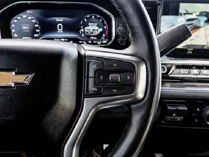 The cabin offers a refined driving experience with leather heated seats and a heated steering wheel, keeping you comfortable in all conditions. Power heated mirrors enhance visibility, while assist steps make entry and exit effortless. The 18 wheels provide a rugged yet polished look, complementing the Silverado's bold exterior design.