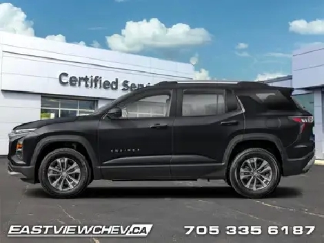 Heated Seats, Heated Steering Wheel, Remote Start, Adaptive Cruise Control, Blind Spot Detection! Whether navigating city streets or weekend getaways its agile ride and flexible cargo space adapt to your lifestyle. The 2026 Chevrolet Equinox brings together stylish design, smart technology, and everyday utility in a compact SUV that doesnt compromise. Inside, youll enjoy a well-appointed interior equipped with modern infotainment, quality finishes, and comfortable seating for five. With its responsive driving characteristics, versatile cargo room, and a strong safety feature set, the Equinox stands out as a well-rounded choice for any driver. This Mosaic Black Metallic SUV has an Automatic transmission and is powered by a 175HP 1.5L 4 Cylinder Engine. Our Equinox's trim level is LT AWD. Standard features include heated front seats, a heated steering wheel, wireless Apple CarPlay and Android Auto, remote engine start, and adaptive cruise control. Safety features also include lane keeping assist with lane departure warning, rear park assist, front pedestrian braking, and collision alert. This vehicle has been upgraded with the following features: Heated Seats, Heated Steering Wheel, Remote Start, Adaptive Cruise Control, Blind Spot Detection, Lane Keep Assist, Apple CarPlay. To apply right now for financing use this link: https://www.eastviewchev.ca/FinancePreQualForm 3.99% financing for 84 months. Buy this vehicle now for the lowest bi-weekly payment of $270.17 with $0 down for 84 months @ 3.99% APR O.A.C. (Complete pricing and payments may differ than advertised, depending on model, trim and options. ). Incentives expire 2026-04-26. See dealer for details. Includes: Environmental fees ($1.00) OMVIC Fee ($10.00) Tire Stewardship ($29.20).(HST), license & registration not included.Eastview Chevrolet is dedicated to making sure your experience is exciting, fun and enjoyable. We are located at 222 Government Rd. in Kapuskasing. We have hundreds of vehicle to choose from and will go out of our way to find you exactly what you are looking for. Call one of our professional staff to arrange your next test drive in a New Chevrolet, Buick or GMC vehicles. Call 705-335-6187. o~o