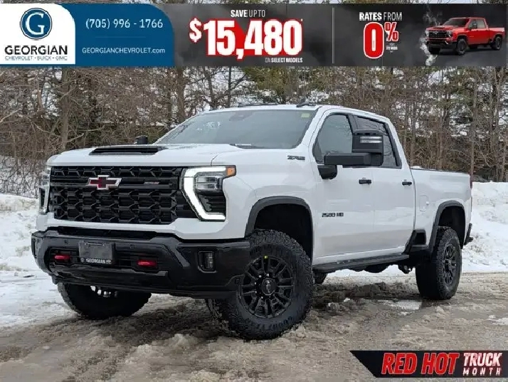 Introducing the 2026 Chevrolet Silverado 2500HD ZR2, a brand new heavy-duty truck designed for those who demand power and versatility. With its robust build and advanced features, this truck is perfect for tackling the diverse Canadian landscape, whether you're navigating urban streets or venturing into rugged terrains. Its commanding presence and durable design make it an ideal choice for drivers who need reliability and performance in every season.