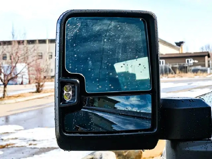 - Mirrors, outside power-adjustable vertical trailering with heated and auto-dimming upper glass, (driver and passenger) lower convex mirrors, turn signal indicators, puddle lamps, perimeter lighting, auxiliary lighting, power folding/extending (extends 3.31" [84.25mm])