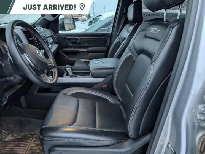 Inside, youll find a sleek Black interior designed with comfort in mind, featuring power seats and a leather steering wheel that puts control at your fingertips. Its not just about looks; the Ram 1500 Rebel combines form and function with features like a backup camera, Bluetooth connection, and keyless entry for a seamless driving experience.