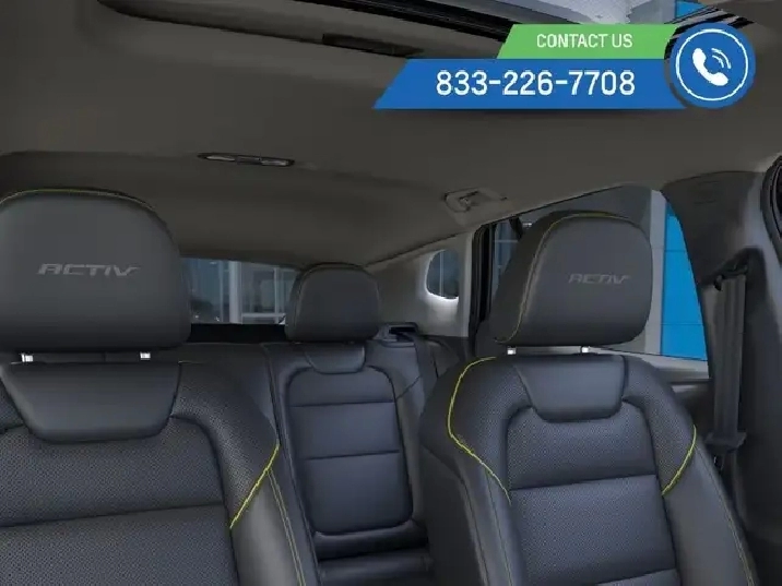 Our Trax's trim level is ACTIV. This Trax ACTIVE rewards you with Evotex synthetic leather seating upholstery, and features the Driver Confidence Package with rear cross traffic alert, blind spot detection and adaptive cruise control, with the LS Convenience Package, that includes a heated steering wheel, heated side mirrors and remote engine start, along with great standard features such as heated front seats, cruise control, 60/40 split-folding rear seats, air conditioning, and an upgraded 11-inch infotainment screen with wireless Apple CarPlay and Android Auto, wi-fi hotspot capability, active noise cancellation, and SiriusXM streaming radio. Safety features also include front pedestrian braking, forward collision alert, lane keeping assist with lane departure warning, IntelliBeam, and a rearview camera. This vehicle has been upgraded with the following features: Leather Seats, Remote Start, Adaptive Cruise Control, Blind Spot Detection, Heated Steering Wheel, Heated Seats, Apple Carplay.