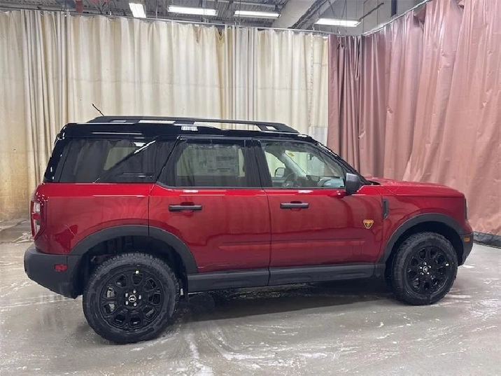 Our Bronco Sport's trim level is Badlands. The cabin features leather-trimmed heated sport contour seats with power adjustments and memory settings complemented by a heated leather steering wheel and dual-zone automatic climate control for all-season comfort. The SYNC 4 infotainment system with a 13.2-inch touchscreen wireless Apple CarPlay and Android Auto Alexa integration and adaptive cruise control with stop-and-go ensures effortless connectivity and convenience. Versatile interior design thoughtful storage solutions and remote start functionality enhance everyday usability while durable vinyl flooring and rubberized mats make it easy to clean after any adventure. On the outside bold 17-inch matte black aluminum wheels all-terrain tires LED headlights and dual tow hooks highlight its capability and confidence. The Terrain Management System offers seven G.O.A.T. modes including rock crawl and rally supported by a rear locking differential and electro-mechanical limited-slip technology for precise traction on any surface. Ford Co-Pilot360 safety features provide comprehensive protection with BLIS Pre-Collision Assist with Automatic Emergency Braking Evasion Assist an Aerial View Camera System and Reverse Brake Assist ensuring complete confidence whether navigating city streets or tackling rugged trails. This vehicle has been upgraded with the following features: 360 Camera Heated Steering Wheel Remote Start Fog Lamps Heated Seats Adaptive Cruise Control Lane Keep Assist.