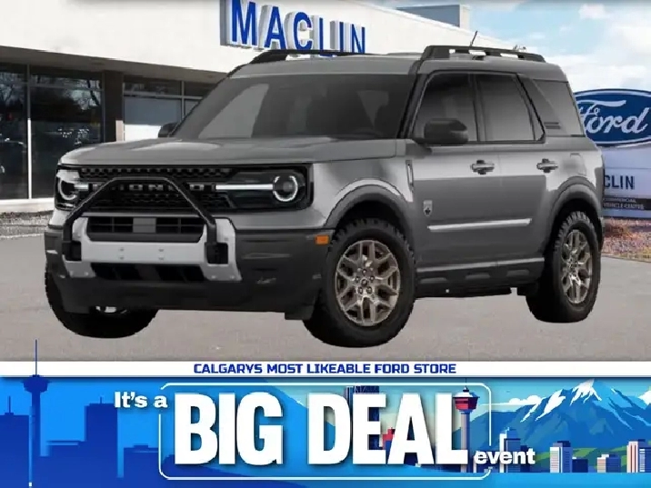 This brand new CARBONIZED GREY METALLIC 2026 FORD BRONCO SPORT BIG BEND is powered by a 1.5L ECOBOOST ENGINE THAT'S PAIRED WITH AN 8-SPD AUTO TRANSMISSION.