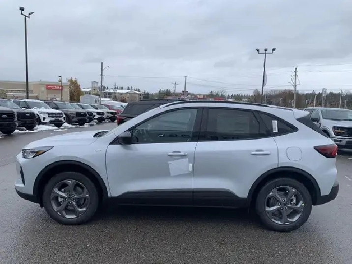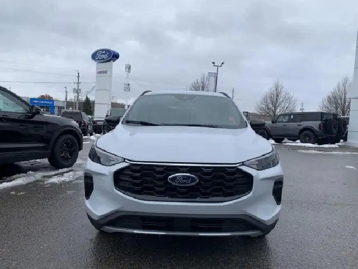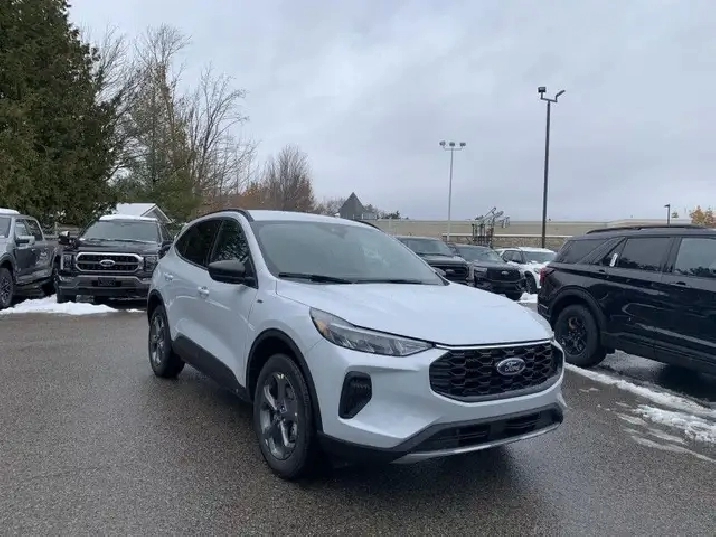 Our Escape's trim level is ST-Line. This sporty ST-Line adds on aluminum wheels, body colored exterior styling and ActiveX synthetic leather seating upholstery, along with amazing standard features such as a power-operated liftgate for rear cargo access, LED headlights with automatic high beams, an 8-inch infotainment screen powered by SYNC 4 with wireless Apple CarPlay and Android Auto, FordPass Connect with 4G mobile internet hotspot access, and proximity keyless entry with push button start. Road safety features include blind spot detection, pre-collision assist with automatic emergency braking and a back-up camera, lane keeping assist, lane departure warning, and front and rear collision mitigation. Additional features include dual-zone climate control, front and rear cupholders, smart device remote engine start, and even more.