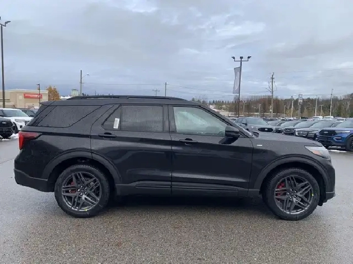 Our Explorer's trim level is ST-Line. This Explorer ST-Line steps things up with BlueCruise 1.2, inbuilt navigation, Bang & Olufsen audio, an aerial view camera system and a heated steering wheel. Also standard include 20" aluminum wheels, FordPass Connect 5G mobile hotspot internet access, adaptive cruise control, smart device remote engine start, and a power liftgate for rear cargo access. On the inside, occupants are treated to heated front seats, voice-activated dual-zone climate control, and a 13.2-inch infotainment screen with wireless Apple CarPlay and Android Auto. Safety features also include lane keep assist with lane departure warning, collision mitigation, automatic emergency braking, evasion assist, and rear parking sensors. This vehicle has been upgraded with the following features: Premium Package.