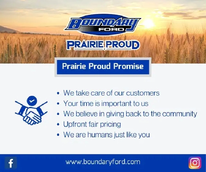 Located at 2502 50th Avenue in the border city of Lloydminster. If our location is not convenient for you, we have delivery to your door available - countrywide! Our knowledgeable Sales Consultants are ready to answer your questions and help you find the right vehicle for you! Here at Boundary Ford we're prairie proud and we offer the best deals in the prairies! We are an AMVIC licensed dealership.