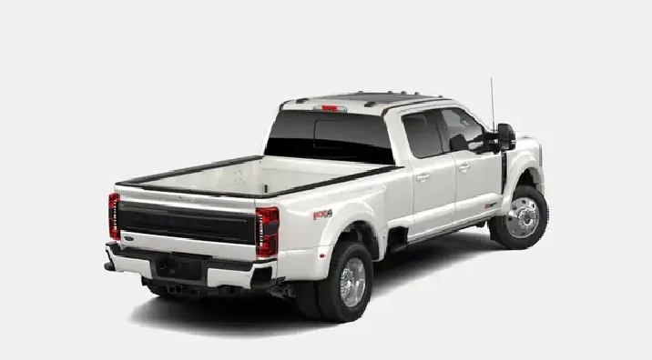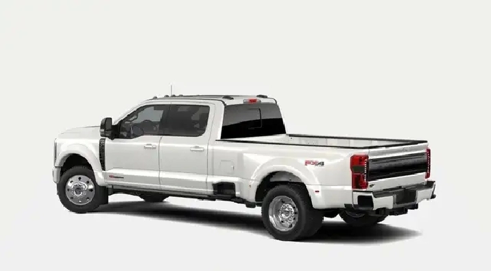 This brand new STAR WHITE METALLIC 2025 FORD F-450 PLATINUM is powered by a 6.7L POWERSTROKE V8 ENGINE THAT'S PAIRED WITH AN ELECTRONIC 10-SPD AUTO TRANSMISSION.