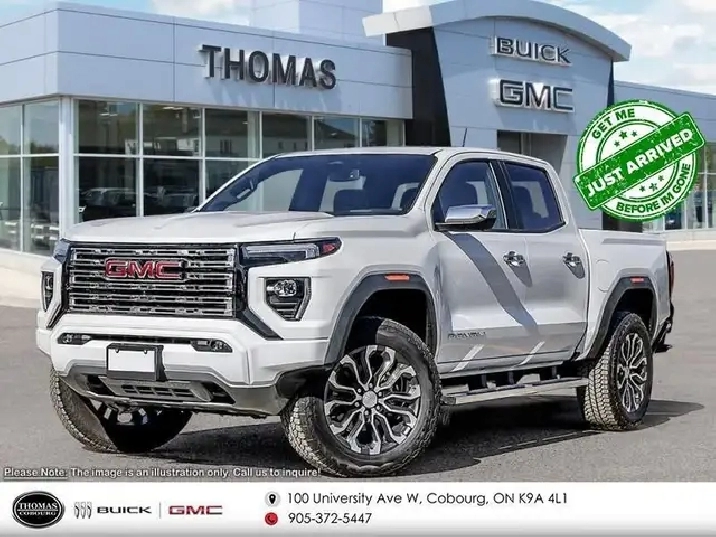 HUD, Bose Premium Audio, Cooled Seats, Heated Steering Wheel, Adaptive Cruise Control, Wireless Charging, Remote Start, Lane Keep Assist, Apple CarPlay, Android Auto, Park Assist Significantly improved ride quality and impressively powerful drivetrains make this 2026 GMC Canyon an exceptional pick-up truck. Aimed at shoppers who desire the capability of a traditional pickup without the compromise of a full-size truck, this 2026 GMC Canyon is ready to take on whatever you throw at it. From work-site duties to intense off-road sessions, this Canyon is sure to never skip a beat! This summit white crew cab 4X4 pickup has an automatic transmission and is powered by a 310HP 2.7L 4 Cylinder Engine. Driven via that strong motor it gets 13.6 L/100 km in the city and 10.7 L/100 km out on the highway according to Transport Canada. Our Canyon's trim level is Denali. The range-topping trim focuses on upscale comfort and premium technology for a refined driving experience. An 11.3-inch Premium Infotainment System with Google Built-In, wireless Apple CarPlay and Android Auto, Bose premium audio, Wi-Fi hotspot capability, multicolour Head-Up Display, and wireless phone charging provide seamless connectivity and entertainment. Perforated leather-appointed heated and ventilated front seats, dual-zone automatic climate control, remote start, adaptive cruise control, multiple power outlets, and soft-touch interior materials create a plush, convenient cabin. HD Surround Vision, Blind Zone Steering Assist with Trailering, Rear Cross Traffic Braking, Lane Keep Assist, and Forward Collision Alert enhance confidence and peace of mind on every journey. 4.79% financing for 84 months. Buy this vehicle now for the lowest weekly payment of $217.84 with $0 down for 84 months @ 4.79% APR O.A.C. Plus applicable taxes - Plus applicable fees . Incentives expire 2026-01-02. See dealer for details. LEASING:Estimated Lease Payment: $199 weekly Payment based on 8.5% lease financing for 48 months with $0 down payment on approved credit. Total obligation $41,509. Mileage allowance of 16,000 KM/year. Offer expires 2026-01-02.Prices include all fees except HST and license. PLEASE NOTE: Fee specifications and availability are subject to change without notice. Contact dealer for most current information.*Fuel consumption ratings and estimates based on GM testing in accordance with Government of Canada approved test methods. Refer to vehicles.nrcan.gc.ca for details.Your actual fuel consumption may vary.While we make every effort to ensure the data listed here is correct, there may be instances where some of the pricing, options or vehicle features may be listed incorrectly as we get data from multiple data sources. Please confirm the details of this vehicle with the dealer to ensure its accuracy. Dealer cannot be held liable for data that is listed incorrectly. Vehicles Displayed in any stock photos are not the actual vehicle and do not represent the actual vehicle. Please see dealer for more details Come by and check out our fleet of 20 used cars and trucks and 280 new cars and trucks for sale in Cobourg. o~o