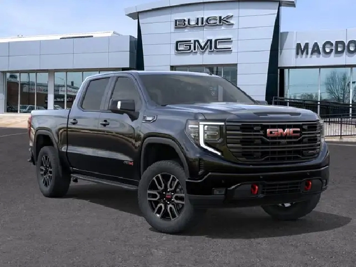 Our Sierra 1500's trim level is AT4. This trim delivers a commanding blend of rugged off-road performance and premium refinement, featuring a factory-installed 2-inch lift, monotube shocks, skid plates, and red recovery hooks for confident trail capability. Inside, the cabin is tailored for comfort with perforated leather bucket seats, heating and ventilation for front passengers, heated rear outboard seats, dual-zone climate control, and advanced tech like a 13.4-inch Premium GMC Infotainment System with Google built-in, Bose premium audio, wireless Apple CarPlay, Android Auto, and wireless charging. Convenience is elevated with a 12.3-inch reconfigurable Driver Information Centre, adaptive cruise control, keyless open and start, remote start, and a power-adjustable steering column. The versatile MultiPro Tailgate, spray-on bedliner, and integrated trailering technology with Hitch View, Hitch Guidance, Trailer Side Blind Zone Alert, and HD Surround Vision enhance everyday utility, while GMC Pro Safety adds confidence through features like Forward Collision Alert, Lane Keep Assist, Automatic Emergency Braking, and Rear Cross Traffic Braking. This vehicle has been upgraded with the following features: Leather Seats, Sunroof, Duramax 3.0L Turbo Diesel Engine, AT4 Premium Package, Spray-On Bedliner, Technology Package.