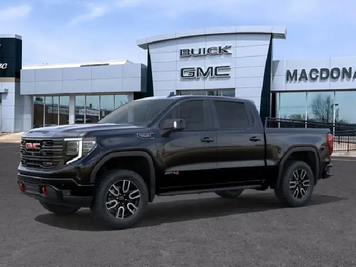 Our Sierra 1500's trim level is AT4. This trim delivers a commanding blend of rugged off-road performance and premium refinement, featuring a factory-installed 2-inch lift, monotube shocks, skid plates, and red recovery hooks for confident trail capability. Inside, the cabin is tailored for comfort with perforated leather bucket seats, heating and ventilation for front passengers, heated rear outboard seats, dual-zone climate control, and advanced tech like a 13.4-inch Premium GMC Infotainment System with Google built-in, Bose premium audio, wireless Apple CarPlay, Android Auto, and wireless charging. Convenience is elevated with a 12.3-inch reconfigurable Driver Information Centre, adaptive cruise control, keyless open and start, remote start, and a power-adjustable steering column. The versatile MultiPro Tailgate, spray-on bedliner, and integrated trailering technology with Hitch View, Hitch Guidance, Trailer Side Blind Zone Alert, and HD Surround Vision enhance everyday utility, while GMC Pro Safety adds confidence through features like Forward Collision Alert, Lane Keep Assist, Automatic Emergency Braking, and Rear Cross Traffic Braking. This vehicle has been upgraded with the following features: Leather Seats, Sunroof, AT4 Premium Package, Spray-On Bedliner, Technology Package.