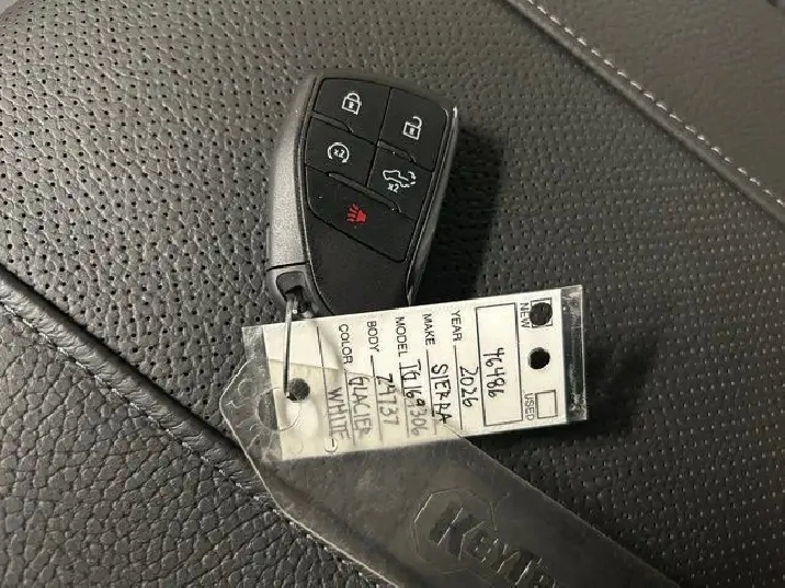 This 2026 GMC Sierra 1500 in Glacier White Tricoat is equipped with 4WD and Gas V8 6.2L/376 engine.