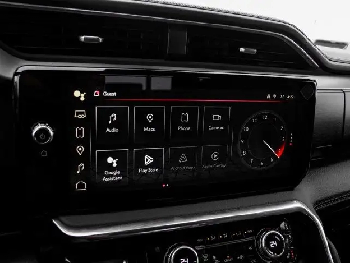 - Audio System, 13.4 " diagonal Premium GMC Infotainment System with Google built in apps such as navigation and voice assistance, includes colour touch-screen, multi-touch display, AM/FM stereo Bluetooth streaming audio for music and most phones; featuring wireless Android Auto and Apple CarPlay capability for compatible phones