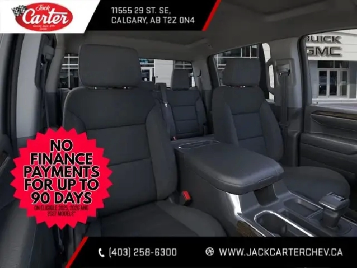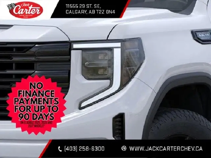 Looking for your best deal on a new Sierra in Calgary? Then try shopping with us: Jack Carters Chevrolet Buick GMC. Located in SE Calgary with easy access off the Deerfoot and Douglasdale, we’ve been giving Calgary and surrounding area the best deal and the best service since 1962. Our Sales staff is experienced and friendly making your truck purchase easy and straightforward. No games, no gimmicks, no marked up GM MSRPs like our competitors do, just great advice and low prices from the start. True GM window stickers on diplay on our lot and in our showroom. Call us for a consult today 403-258-6300Choose your Model, flexibility of short box, standard box or long box. Choose your Cab fro Reg cab, Double cab and crew cab. Choose your engine from the 6.2L V8 that delivers best-in-class V8 power and towing, an available LZ0 Duramax® 3.0L Turbo-Diesel that offers better fuel efficiency than any other full-size pickup, the legendary 5.3L V8, and GM’s new Turbo 2.7L option producing the same torque as the 6.2L V8. Choose your trim from the everything you need Pro, the new tried and tested SLE and the SLT, sporty Elevation, the top of the line Denali and Denali Ultimate, or go with our factory lifted lineup: the At4, or the overcome anything AT4X. Choose Jack Carter and give our friendly sale staff a call at 403-258-6300 or visit us at jackcarterchev.com. Key Available features: 4X4 / Four Wheel Drive, G80 Locking Differential, Z71 Off Road Suspension, X31 off Road package, Front Bucket seats, Leather seats, Power passenger seat, memory seats, Max Trailer Package, NHT, Bose sound system, Power sliding rear window, Remote start, heated seats, heated steering wheel, cooled seats, Front park assist, rear parking assist, Surround vision camera, Wireless charging, Adaptive cruise control, Supercruise, Carbon Fiber Bed, Premium Suspension with adaptive ride control, XM radio, Apple Carplay and Android Auto, Massage seats, rear camera mirror and more.