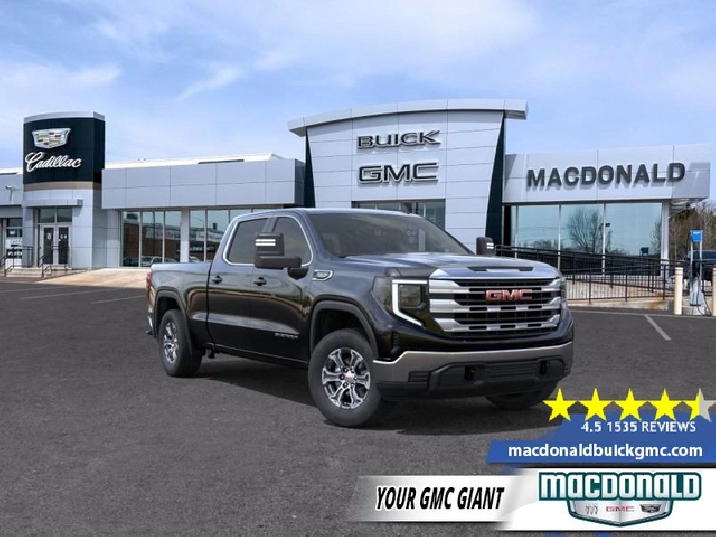 Our Sierra 1500's trim level is SLE. This trim blends rugged utility with everyday comfort, offering standout features like the Trailering Package with hitch guidance, integrated brake controller, and 12 fixed cargo tie-downs for serious hauling capability. Off-roaders will appreciate the Kodiak Editions auto-locking rear differential, while chrome bumpers, LED projector headlamps, and signature taillights add bold style. Inside, the SLE Convenience Package elevates refinement with dual-zone climate control, a 10-way power driver seat, heated front seats, heated steering wheel, remote start, and LED cargo lighting. A 13.4-inch Premium GMC Infotainment System with Google built-in, wireless Apple CarPlay/Android Auto, and Wi-Fi hotspot keep you connected on every drive. GMC Pro Safety comes standard, adding confidence with Forward Collision Alert, Lane Keep Assist, Automatic Emergency Braking and more, making the Sierra SLE a smart balance of strength, comfort, and modern tech. This vehicle has been upgraded with the following features: Spray-on Bedliner, 18 Inch Aluminum Wheels, Power Heated Mirrors, Max Trailering Package.