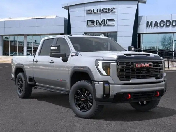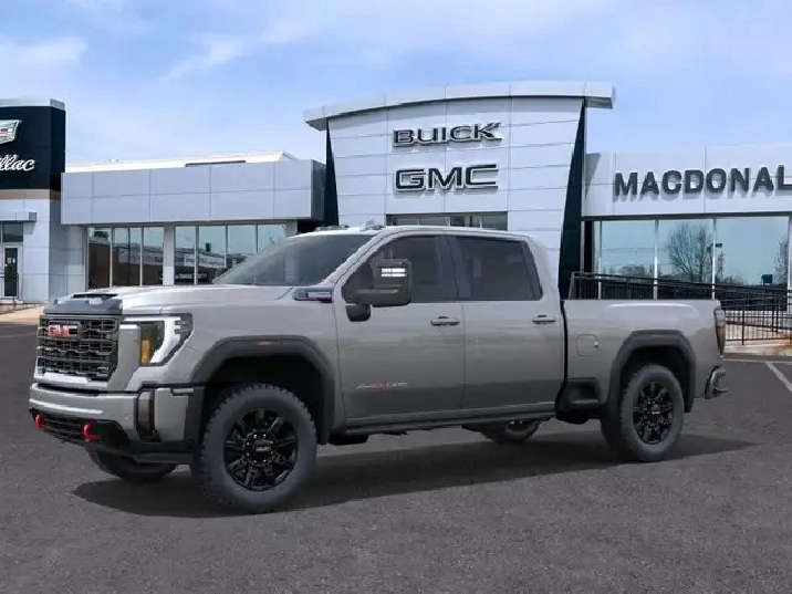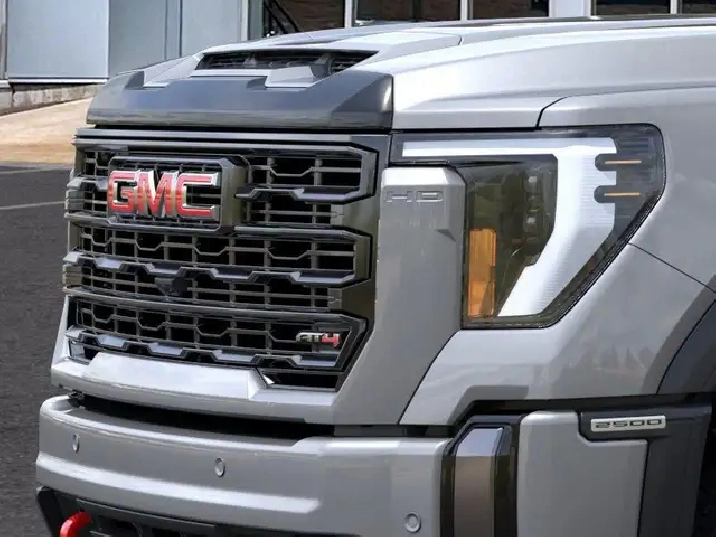 Our Sierra 2500HD's trim level is AT4. This trim rewards you with the X31 Off-Road Package built for rugged adventures with skid plates, Hill Descent Control, off-road suspension, and Rancho twin-tube shocks, plus red recovery hooks for added capability. It comes equipped with the Sierra HD Pro Safety suite, featuring Automatic Emergency Braking, Lane Departure Warning, Forward Collision Alert, and more, alongside advanced trailering technology like Hitch Guidance with Hitch View, the ProGrade Trailering System, and a spray-on bedliner with MultiPro Tailgate. Inside, youll find heated and ventilated leather seats, a Bose premium audio system, a 13.4" infotainment display with Google built-in, wireless Apple CarPlay/Android Auto, and wireless charging, while Adaptive Cruise Control, HD Surround Vision, and Trailer Side Blind Zone Alert add confidence on every drive. Rugged 20" black aluminum wheels, LED animated headlamps and taillamps, and body-colour accents complete the bold, off-road-ready design. This vehicle has been upgraded with the following features: Leather Seats, At4 Premium Plus Package, Gooseneck/ 5th Wheel Prep Package.