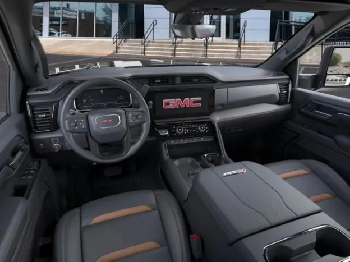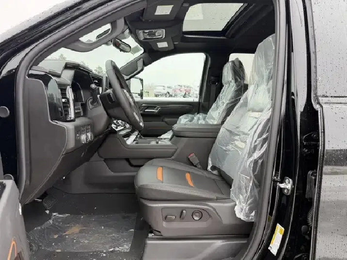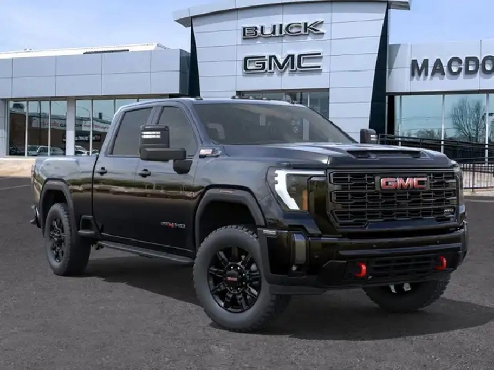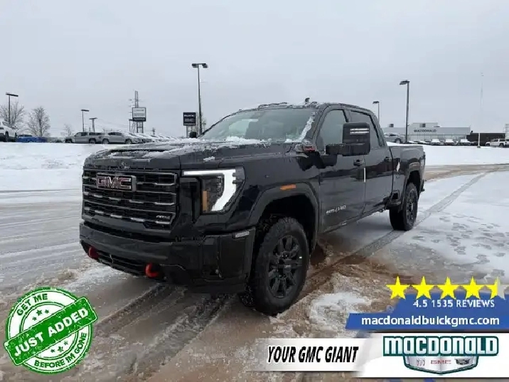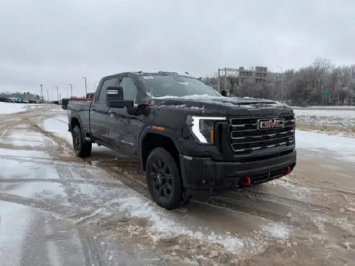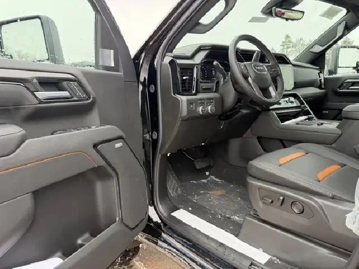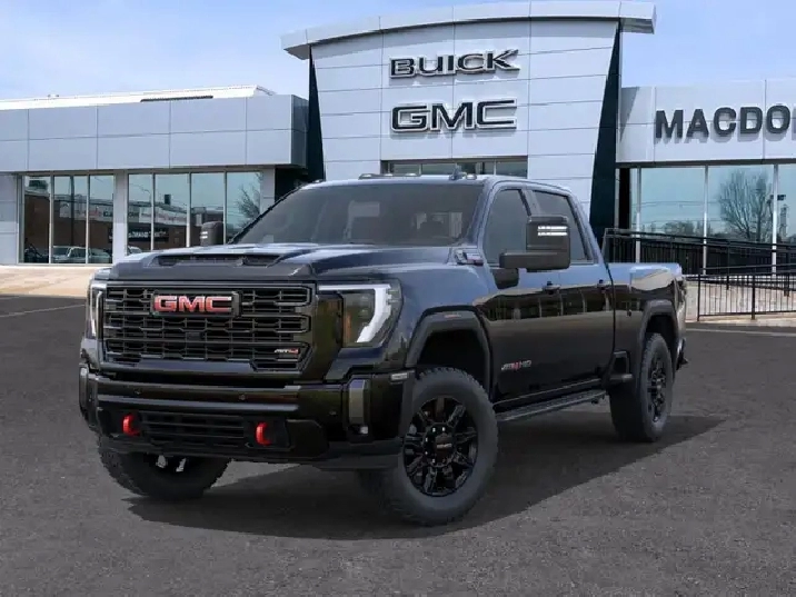 Our Sierra 2500HD's trim level is AT4. This trim rewards you with the X31 Off-Road Package built for rugged adventures with skid plates, Hill Descent Control, off-road suspension, and Rancho twin-tube shocks, plus red recovery hooks for added capability. It comes equipped with the Sierra HD Pro Safety suite, featuring Automatic Emergency Braking, Lane Departure Warning, Forward Collision Alert, and more, alongside advanced trailering technology like Hitch Guidance with Hitch View, the ProGrade Trailering System, and a spray-on bedliner with MultiPro Tailgate. Inside, youll find heated and ventilated leather seats, a Bose premium audio system, a 13.4" infotainment display with Google built-in, wireless Apple CarPlay/Android Auto, and wireless charging, while Adaptive Cruise Control, HD Surround Vision, and Trailer Side Blind Zone Alert add confidence on every drive. Rugged 20" black aluminum wheels, LED animated headlamps and taillamps, and body-colour accents complete the bold, off-road-ready design. This vehicle has been upgraded with the following features: Leather Seats, AT4 Premium Plus Package, Gooseneck/ 5th Wheel Prep Package.