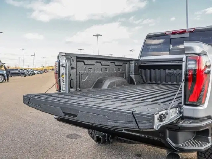 - Tailgate, GMC MultiPro Tailgate with six functional load/access features NOTE: Auto release can be disabled if ball hitch is installed. See Owner's manual for details