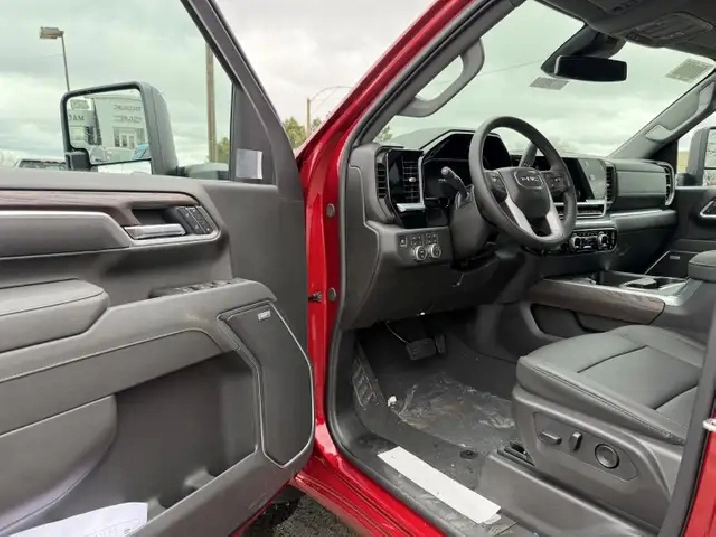 Our Sierra 2500HD's trim level is SLT. Standard features include perforated leather-appointed seating, heated front seats, dual-zone automatic climate control, and a 13.4" GMC Premium Infotainment System with Google built-in, wireless Apple CarPlay/Android Auto, Bluetooth, Wi-Fi hotspot capability, and a 12.3" digital driver display create a connected and comfortable cabin. On the outside, 18" machined aluminum wheels, animated LED projector headlamps, LED fog lamps, rain-sensing wipers, chrome accents, and a power-locking EZ Lift tailgate with integrated bed steps showcase style and utility. Trailering is made seamless with the ProGrade Trailering System featuring Hitch Guidance with Hitch View, an in-vehicle trailering app, trailer brake controller, and power-adjustable heated trailering mirrors with perimeter and auxiliary lighting. Advanced driver-assist technologies come through the Sierra HD Pro Safety suite, including Forward Collision Alert, Lane Departure Warning, Automatic Emergency Braking, Front Pedestrian Braking, IntelliBeam auto high beams, Following Distance Indicator, HD Rear Vision Camera, and Teen Driver mode. This vehicle has been upgraded with the following features: Leather Seats, X31 Off Road Package, Multi-Pro Tailgate, Gooseneck/ 5th Wheel Prep Package, SLT Convenience Package.