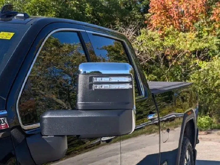 - Mirrors, outside power-adjustable vertical trailering with heated and auto-dimming upper glass, (driver and passenger) lower convex mirrors, turn signal indicators, puddle lamps, perimeter lighting, auxiliary lighting, power folding/extending (extends 3.31" [84.25mm])