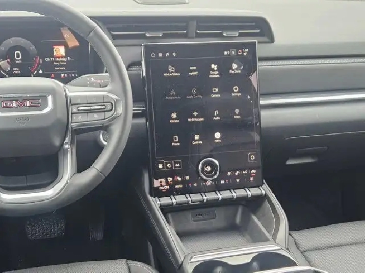 - 15" diagonal Premium GMC Infotainment System high contrast display with Google Built-In compatibility including navigation capability, colour touch-screen, multi-touch display, connected apps, personalized for each driver's settings, Natural Voice Recognition and Phone Integration for Wireless Apple CarPlay/Wireless Android Auto for compatible phones