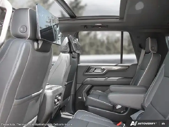 - SEATS SECOND ROW BUCKET POWER RELEASE (Includes (DCH) power-sliding centre console.,ENGINE BLOCK HEATER,3 YEARS SIRIUSXM SiriusXM Extended Service subscription will stop at the end of the applicable subscription period unless you decide to continue service. Plan is non-transferable and non-refundable. Service subject to the SiriusXM Customer Agreement and Privacy Policy visit siriusxm.ca/terms to see complete terms and how to cancel which includes online methods or calling 1-888-539-7474. Some services content and features are subject to device capabilities an active data connection enabled in the vehicle and location availability. All fees content and features are subject to change. Content varies by subscription plan. SiriusXM and related logos are trademarks of Sirius XM Radio Inc. and its respective subsidiaries.),ELEVATION PREMIUM PACKAGE includes (CWM) Technology Package (NHT) Max Trailering Package (C3U) power sunroof and (UW9) Rear Sear Media System (Includes (UKL) Super Cruise when (LZ0) Duramax 3.0L Turbo-Diesel engine is ordered. which includes (DCH) power-sliding centre console.,TRANSMISSION 10-SPEED AUTOMATIC electronically controlled with overdrive includes Traction Select System including tow/haul (STD),JET BLACK CORETEC/PERFORATED LEATHER-APPOINTED SEATING,ELEVATION PREFERRED EQUIPMENT GROUP includes standard equipment,ENGINE 5.3L ECOTEC3 V8 with Dynamic Fuel Management Direct Injection and Variable Valve Timing includes aluminum block construction (355 hp [265 kW] @ 5600 rpm 383 lb-ft of torque [518 Nm] @ 4100 rpm) (STD),STERLING METALLIC,Front Collision Warning,Child Safety Locks,Stability Control,Smart Device Integration,Requires Subscription,3rd Row Seat,Power Steering,Traction Control,Requires Subscription,Adaptive Cruise Control,Passenger Vanity Mirror,Adjustable Steering Wheel,Driver Vanity Mirror,Rear Parking Aid,Power Door Locks,Power Mirror(s),Aluminum Wheels,Tires - Front All-Season,Front Side Air Bag,Brake Assist,WiFi Hotspot,Rear Defrost,Daytime Running Lights,Telematics,Power Windows,Back-Up Camera,Cruise Control,Cruise Control,Passenger Air Bag Sensor,Auxiliary Audio Input,Lane Keeping Assist,Four Wheel Drive,Rear A/C,Heated Rear Seat(s),Evasion Assist,Adaptive Cruise Control,MP3 Capability,Power Windows,Pass-Through Rear Seat,Rear Bench Seat,Driver Adjustable Lumbar,Integrated Turn Signal Mirrors,Power Folding Mirrors,Heated Front Seat(s),Rear A/C,Requires Subscription,Front Collision Mitigation,Aerial View Display System,Heated Steering Wheel,Steering Wheel Audio Controls,WiFi Hotspot,Front Collision Mitigation,Passenger Adjustable Lumbar,Power Driver Seat,Blind Spot Monitor,Power Door Locks,ABS,Bluetooth Connection,Front Collision Warning,Navigation System,Auxiliary Audio Input,Passenger Air Bag,Automatic Parking,Bluetooth Connection,Front Collision Warning,A/C,Bucket Seats,Brake Assist,Heated Steering Wheel,Tow Hitch,Climate Control,Luggage Rack,Conventional Spare Tire,Intermittent Wipers,Universal Garage Door Opener,MP3 Capability,Fog Lamps,Driver Illuminated Vanity Mirror,Keyless Entry,Security System,Power Passenger Seat,Premium Sound System,Seat Memory,Passenger Illuminated Visor Mirror,Conventional Spare Tire,Floor Mats,4-Wheel Disc Brakes,Rain Sensing Wipers,Requires Subscription,Mirror Memory,Heated Mirrors,Rear Head Air Bag,Automatic Highbeams,Auxiliary Audio Input,Telematics,Remote Engine Start,Satellite Radio,Driver Air Bag,Driver Restriction Features,Variable Speed Intermittent Wipers,Power Windows,Running Boards/Side Steps,Pass-Through Rear Seat,Tires - Rear All-Season,A/C,Cross-Traffic Alert,Keyless Start,Privacy Glass,Multi-Zone A/C,Telematics,Front Head Air Bag,Leather Seats,Rear Collision Mitigation,Auto-Dimming Rearview Mirror,Lane Departure Warning,Tire Pressure Monitor,Locking/Limited Slip Differential,Front Collision Warning,MP3 Capability,Air Suspension,Remote Trunk Release,Power Liftgate