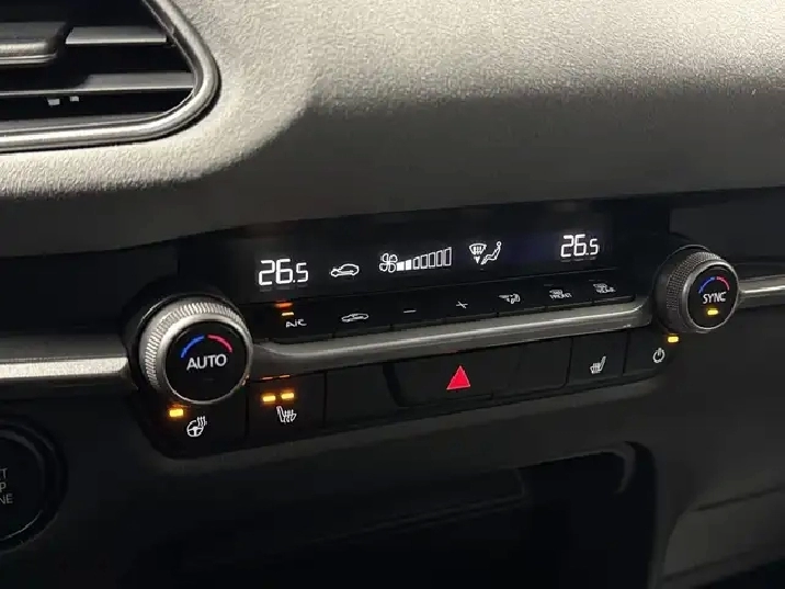 Engineered for appealing comfort, our GS Kuro cabin boasts heated white leatherette with grey cloth insert seats, a leather-wrapped steering wheel, dual-zone automatic climate control, keyless ignition, and versatile storage solutions. Staying connected isn't an option, so our CX-30 comes standard with an 10.25-inch central display, a Commander controller, Android Auto, Apple CarPlay, Bluetooth, and a Harmonic Acoustics sound system.