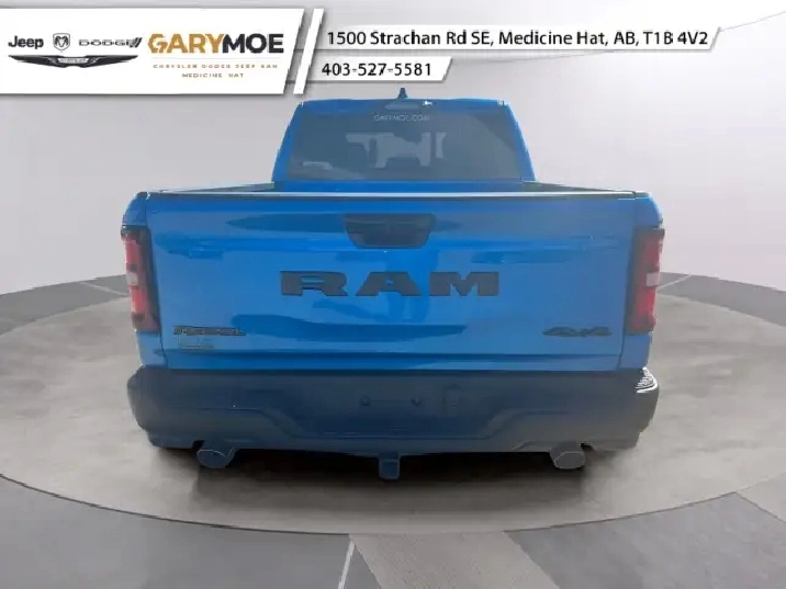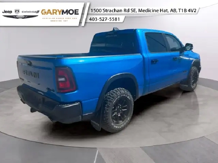 Make a bold statement on and off the road with the new 2026 Ram 1500 Rebel in a stunning blue, featuring a robust 4x4 drivetrain that promises excellent handling in various terrains. This trucks commanding presence is matched by its stylish exterior design and striking interior in a complementary blue finish.