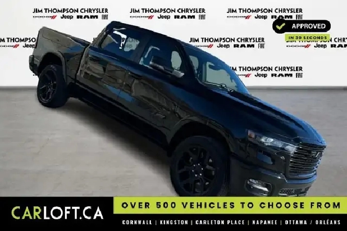 This 2026 Ram 1500 is for sale today. This low mileage Crew Cab 4X4 pickup has just 12 kms. It's diamond black crystal pearlcoat in colour . It has a 8 speed automatic transmission and is powered by a 420HP 3.0L Straight 6 Cylinder Engine.