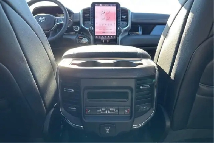 Our 1500's trim level is Laramie. This Ram 1500 Laramie rewards you with great standard features such as ventilated and heated front seats, heated second row seats, leather upholstery, a heated leather steering wheel, a 10-speaker Alpine audio system, and a 12-inch infotainment screen powered by Uconnect 5W with inbuilt navigation, Apple CarPlay, Android Auto and 4G LTE Wi-Fi hotspot. Additional features include class IV towing equipment, a trailer wiring harness, front and rear parking sensors, blind spot detection, lane keeping assist with lane departure warning, remote start, adaptive cruise control, and even more!
