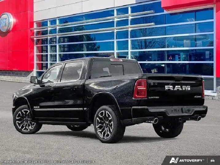 - WHEELS: 22 X 9 PREMIUM BLACK-PAINTED ALUMINUM,E-LOCKER REAR AXLE,BED UTILITY GROUP -inc: 4 MOPAR Adjustable Cargo Tie-Down Hooks Truck Bed Cargo Divider Exterior 115V Auxiliary Power Outlet,TRI-FOLD SOFT TONNEAU COVER,RADIO: UCONNECT 5 NAV W/14.4 DISPLAY,LIMITED LEVEL A EQUIPMENT GROUP -inc: Surround View Camera System LED Centre High-Mounted Stop Lamps Tri-Fold Soft Tonneau Cover Radio: Uconnect 5 Nav w/14.4 Display Traffic Sign Recognition RamBox Cargo Management System Hands-Free Active Driving Assist System Head-Up Display Evasive Steer Assist Drowsy Driver Detection Exterior 115V Auxiliary Power Outlet Intersection Collision Assist System Smartphone As A Key 14.4 Touchscreen Display 240 Amp Alternator Digital Rearview Mirror w/Autodim 12-Way/1-Way Trailer Connector,ENGINE: 3.0L I6 HO TWIN TURBO W/ESS (STD),NIGHT EDITION -inc: Tires: 285/45R22XL BSW All Season Black Headlamp Bezels Wheels: 22 x 9 Premium Black-Painted Aluminum Pirelli Brand Tires Accent Colour Door Handles Body-Colour Front Bumper Body-Colour Rear Bumper w/Step Pads Black Painted Exterior Mirror Caps Black RAM Grille Badge Accent-Colour Premium Power Mirrors Sport Performance Hood Black Exterior Badging Black Daylight Opening Mouldings Accent Colour Tailgate Handle Black Dual Exhaust Tips Black Grille w/Bright Surround Black Tail Lamp Bezels,TRANSMISSION: 8-SPEED AUTOMATIC (STD),QUICK ORDER PACKAGE 22M LIMITED -inc: Engine: 3.0L I6 HO Twin Turbo w/ESS Transmission: 8-Speed Automatic,BLACK PREMIUM QUILTED LEATHER-FACED BUCKET SEATS,DIAMOND BLACK CRYSTAL PEARL,DUAL-PANE PANORAMIC SUNROOF -inc: LED Dome Reading Lamp LED Dual Dome Reading Lamps,TRAILER BRAKE CONTROL,TIRES: 285/45R22XL BSW ALL SEASON,Air Suspension,Tow Hitch,Four Wheel Drive,Turbocharged,Satellite Radio,Bluetooth Connection,Power Retractable Running Boards,Rain Sensing Wipers,Fog Lamps,LED Headlights,Power Door Locks,HD Radio,Running Boards/Side Steps,AM/FM Stereo,Premium Sound System,Requires Subscription,Heated Mirrors,Intermittent Wipers,MP3 Capability,Daytime Running Lights,Premium Sound System,Requires Subscription,Steering Wheel Audio Controls,Navigation System,Power Folding Mirrors,Automatic Highbeams,Satellite Radio,Variable Speed Intermittent Wipers,Auxiliary Audio Input,HD Radio,Rear Defrost,Automatic Headlights,Privacy Glass,Aluminum Wheels,Power Steering,4-Wheel Disc Brakes,Tow Hooks,Air Suspension,Tires - Front Performance,ABS,Seat-Massage,Power Door Locks,Air Suspension,Locking/Limited Slip Differential,Brake Assist,Integrated Turn Signal Mirrors,Bed Liner,Power Mirror(s),Tires - Rear Performance,Conventional Spare Tire,Keyless Entry,Heated Rear Seat(s),Smart Device Integration,Power Door Locks,Multi-Zone A/C,Lane Departure Warning,Driver Adjustable Lumbar,Passenger Adjustable Lumbar,Trip Computer,Power Windows,Adjustable Pedals,Driver Vanity Mirror,Remote Engine Start,Leather Steering Wheel,Driver Adjustable Lumbar,Adjustable Steering Wheel,Leather Seats,Seat Memory,Navigation System,Power Door Locks,Front Collision Mitigation,Blind Spot Monitor,Smart Device Integration,Cooled Front Seat(s),Immobilizer,Heated Front Seat(s),Keyless Entry,Cross-Traffic Alert,Requires Subscription,Lane Departure Warning,Cruise Control Steering Assist,Stability Control,A/C,Heated Rear Seat(s),Rear Parking Aid,Rear Bench Seat,Front Side Air Bag,Traction Control,Back-Up Camera,Cooled Rear Seat(s),Traction Control,Lane Keeping Assist,Child Safety Locks,Bluetooth Connection,Woodgrain Interior Trim,Seat-Massage,Passenger Illuminated Visor Mirror,Cruise Control,Keyless Start,Power Driver Seat,Driver Air Bag,Security System,Auto-Dimming Rearview Mirror,Seat-Massage,Heated Rear Seat(s),Passenger Air Bag Sensor,Universal Garage Door Opener,Rear Head Air Bag,Passenger Air Bag,Smart Device Integration,Cooled Rear Seat(s),Front Head Air Bag,WiFi Hotspot,Remote Engine Start,Heated Front Seat(s),Power Passenger Seat,Floor Mats,Bucket Seats,Adaptive Cruise Control,Passenger Vanity Mirror,Mirror Memory,Heated Steering Wheel,Mirror Memory,Keyless Start,Driver Illuminated Vanity Mirror,Climate Control,Pass-Through Rear Seat,Tire Pressure Monitor,Trip Computer,Power Windows