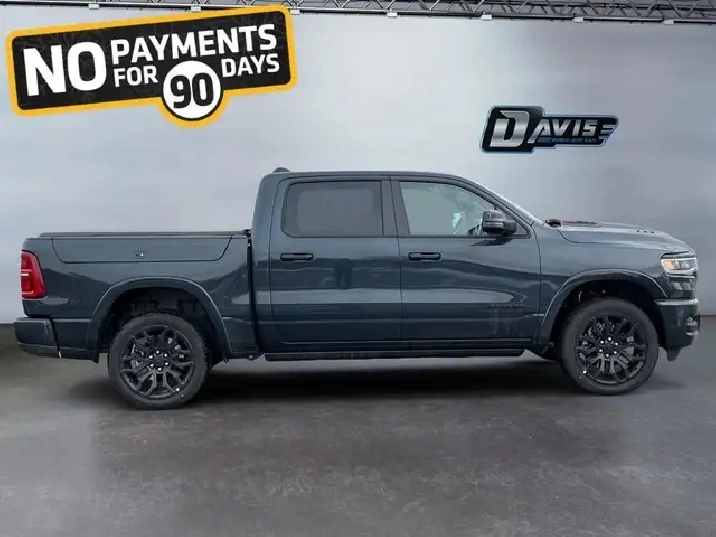 WAS: $112815 NOW: $101824 plus taxes and licensing feesPower Tailgate, Power Running Boards,19 Speaker Premium Audio, Cooled Seats, Navigation, Heated Steering Wheel, Adaptive Cruise Control, Remote Start, Blind Spot Detection, Lane Keep Assist, Lane Departure Warning The 2026 Ram 1500 Limited Crew Cab 4x4 blends premium luxury with serious capability. Finished in bold Forged Blue Metallic with the Night Edition, this full-size pickup is powered by the 3.0L Hurricane High Output twin-turbo inline-6 paired to a smooth 8-speed automatic transmission. With 4-corner air suspension, 3.92 rear axle, and a Class IV receiver hitch, it delivers confident towing, a refined ride, and everyday versatility.Step inside and experience true upscale comfort. The cabin features premium quilted leather bucket seats, heated and ventilated front and rear seats, front seat massage, and a dual-pane panoramic sunroof. Technology is front and center with the massive 14.4-inch Uconnect 5 NAV touchscreen, front passenger interactive display, wireless charging, head-up display, and a 19-speaker Harman Kardon premium audio system.Advanced safety and driver-assist technologies come standard, including adaptive cruise control with stop & go, hands-free active driving assist, surround-view camera, blind-spot monitoring, lane management, intersection collision assist, and front & rear ParkSense with stop. The 2026 Ram 1500 Limited sets the benchmark for luxury trucks, offering refined comfort, cutting-edge tech, and unmistakable Ram performance. To apply right now for financing use this link: https://www.bridgecitychrysler.com/pre-approval/ As a premier Chrysler, Dodge, Jeep and RAM dealership, Bridge City Chrysler proudly offers an extensive selection of new and used vehicles to meet every driver’s needs. Customers across Lethbridge, Fort Macleod, Taber, Claresholm, Coaldale, and beyond trust us for daily vehicle specials, certified service and parts, and a seamless online inventory experience. With competitive financing options and expert support, we make car buying easy and enjoyable. Ready to hit the road? Schedule your test drive today at Bridge City Chrysler, your trusted Chrysler, Dodge, Jeep and RAM dealer in Lethbridge, Alberta. Vehicle pricing offer shown expires 2026-01-31. Come by and check out our fleet of 70 used cars and trucks and 130 new cars and trucks for sale in Lethbridge. o~o