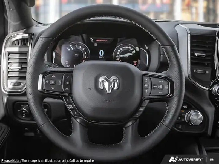 Safety and everyday usability are built into the design of this Ram. The elevated driving position offers a commanding view of the road, which helps with visibility in traffic and on the job site. Large mirrors and a wide rear window make it easier to maneuver in tight parking lots or when backing up to a trailer. The sturdy frame and advanced braking systems are engineered to support confident stopping and control, even when the truck is loaded.