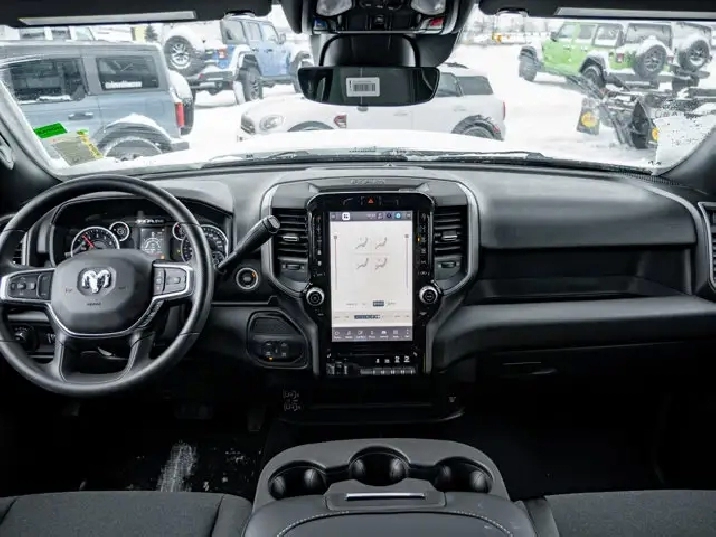 - TRADESMAN LEVEL 1 EQUIPMENT GROUP -inc: Convenience Group Radio: Uconnect 5 Nav w/12.0 Display Auto-Dimming Rearview Mirror Rear Power Sliding Window Emergency Vehicle Alert System (EVAS) 12 Touchscreen Display Tinted Acoustic Windshield GPS Navigation 4G LTE Wi-Fi Hot Spot SiriusXM w/360L On-Demand Content Connected Travel & Traffic Services Mirror Running Lights 115-Volt Auxiliary Power Outlet - Exterior Alexa Built-In Off-Road Information Pages Trailer Tow Pages 400-Watt Inverter Disassociated Touchscreen Display HD Radio A/C w/Dual-Zone Auto Temp Control 115-Volt Auxiliary Power Outlet - Front Front & Rear Floor Mats Park-Sense Front & Rear Park Assist,BLACK CLOTH FRONT 40/20/40 BENCH SEAT,BRIGHT WHITE,REAR WHEELHOUSE LINERS,ENGINE: 6.4L V8 HEMI HD (STD),TRANSMISSION: 8-SPEED AUTOMATIC (8HP75-LCV) (STD),QUICK ORDER PACKAGE 2UB WARLOCK -inc: Engine: 6.4L V8 HEMI HD Transmission: 8-Speed Automatic (8HP75-LCV) Forward & Reverse Utility Lights Power Heated Folding Telescopic Mirrors Exterior Mirrors w/Turn Signals Exterior Mirrors w/Courtesy Lamps Auto Power Folding Mirrors Rear Performance-Tuned Shocks Front Performance-Tuned Shocks Heated Exterior Mirrors Mirror Running Lights Warlock Decal Power Adjust Mirrors Black Wheel Flares Power Telescoping Mirrors Carpet Floor Covering Hill Descent Control Power Convex Aux Exterior Mirrors,CLEARANCE LAMPS,MOPAR BLACK TUBULAR SIDE STEPS,GVWR: 4 535 KGS (10 000 LBS) (STD),3.73 REAR AXLE RATIO (STD),RADIO: UCONNECT 5 NAV W/12.0 DISPLAY,Tow Hitch,ABS,Four Wheel Drive,Locking/Limited Slip Differential,Power Steering,4-Wheel Disc Brakes,Brake Assist,Privacy Glass,Intermittent Wipers,AM/FM Stereo,Conventional Spare Tire,Tow Hooks,Fog Lamps,Daytime Running Lights,Bluetooth Connection,LED Headlights,Tires - Front All-Terrain,Aluminum Wheels,Rear Defrost,Variable Speed Intermittent Wipers,Tires - Rear All-Terrain,Automatic Headlights,Power Door Locks,Satellite Radio,Requires Subscription,Auxiliary Audio Input,MP3 Capability,A/C,Satellite Radio,Power Windows,Requires Subscription,Cruise Control,Rear Bench Seat,Keyless Start,Keyless Entry,WiFi Hotspot,Adjustable Steering Wheel,Adaptive Cruise Control,Power Door Locks,Traction Control,Smart Device Integration,Passenger Air Bag Sensor,Bluetooth Connection,Power Door Locks,Child Safety Locks,Power Windows,Front Collision Mitigation,Front Head Air Bag,Smart Device Integration,Immobilizer,Traction Control,Driver Air Bag,Passenger Vanity Mirror,Back-Up Camera,Front Side Air Bag,Passenger Air Bag,Tire Pressure Monitor,Stability Control,Floor Mats,Rear Head Air Bag,Split Bench Seat