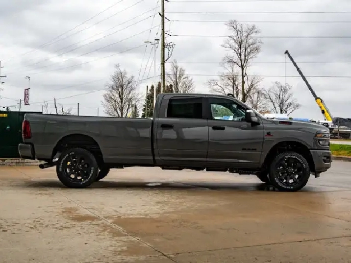 DUAL ALTERNATORS RATED AT 480 AMPS,TRANSMISSION: 8-SPEED TORQUEFLITE AUTOMATIC,WHEELS: 20 X 8 BLACK ALUMINUM,BLACK PREMIUM CLOTH FRONT BUCKET SEATS -inc: Bucket Seats Rear 60/40 Split Folding Bench Seat Fold-Flat Load Floor w/Storage Power 8-Way Adjustable Driver Seat Front Seatback Map Pockets Power 2-Way Driver Lumbar Adjust Full Length Upgraded Floor Console,REAR WHEELHOUSE LINERS,ON-BOARD POWER SYSTEM - 2.4KW,POWER 2-WAY DRIVER LUMBAR ADJUST,CLEARANCE LAMPS,BLIND-SPOT/CROSS-PATH -inc: LED Taillamps Red Taillamp Bezels,REMOTE START SYSTEM,5TH WHEEL/GOOSENECK TOWING PREP GROUP,ENGINE: 6.7L CUMMINS I-6 HO TURBO DIESEL -inc: Selective Catalytic Reduction (Urea) Dual 730-Amp Maintenance-Free Batteries Cummins Turbo Diesel Badge Heavy-Duty Engine Cooling Diesel Exhaust Brake Supplemental Heater 3.42 Axle Ratio Front Bumper Sight Shields Capless Fuel-Filler GVWR: 5 007 kgs (11 040 lbs) MOPAR Winter Front Grille Cover,NIGHT EDITION -inc: Gloss Black Nostrils/Black Grille Tires: LT285/60R20E OWL On/Off Road Black Exterior Badging Wheels: 20 x 8 Black Aluminum Body-Colour Grille Surround Black Interior Accents Black Wheel Centre Hub Body-Colour Front Bumper Painted Rear Bumper,TIRES: LT285/60R20E OWL ON/OFF ROAD,CERAMIC GREY,QUICK ORDER PACKAGE 24Z -inc: Engine: 6.7L Cummins I-6 HO Turbo Diesel Transmission: 8-Speed TorqueFlite Automatic,ANTI-SPIN DIFFERENTIAL REAR AXLE,3.42 AXLE RATIO,RADIO: UCONNECT 5 NAV W/12.0 DISPLAY,GVWR: 5 007 KGS (11 040 LBS),BIG HORN LEVEL 2 PLUS EQUIPMENT GROUP -inc: Surround View Camera System Blind-Spot/Cross-Path LED Taillamps Red Taillamp Bezels Power Adjustable Pedals 12 Touchscreen Display Glove Box Lamp Auto Power Folding Mirrors Footwell Courtesy Lamp Anti-Spin Differential Rear Axle Drowsy Driver Detection Front Heated Seats MOPAR Deployable Bed Step 115-Volt Auxiliary Power Outlet - Exterior Alexa Built-In Active Lane Management System Forward & Reverse Utility Lights Locking Lower Glove Box Remote Start System 9 Alpine Speakers w/Subwoofer Disassociated Touchscreen Display Dual Wireless Charging Pad Trailer Tire Pressure Monitoring Dual Glove Boxes 115-Volt Auxiliary Power Outlet - Front Universal Garage Door Opener 2nd-Row In-Floor Storage Bins Sun Visors w/Illuminated Vanity Mirrors Radio: Uconnect 5 Nav w/12.0 Display Centre Stop Lamp w/Cargo Camera Rain-Sensing Windshield Wipers Auto-Dimming Rearview Mirror Rear Power Sliding Window Rear Dome Lamp w/On/Of,Four Wheel Drive,4-Wheel Disc Brakes,Tow Hitch,Power Steering,Brake Assist,ABS,Bluetooth Connection,Variable Speed Intermittent Wipers,Conventional Spare Tire,Automatic Headlights,LED Headlights,Integrated Turn Signal Mirrors,Power Mirror(s),Daytime Running Lights,Intermittent Wipers,Power Door Locks,Aluminum Wheels,Tow Hooks,Rear Defrost,Fog Lamps,AM/FM Stereo,Privacy Glass,Heated Mirrors,Satellite Radio,Requires Subscription,MP3 Capability,Auxiliary Audio Input,Keyless Entry,Trip Computer,Power Door Locks,Adaptive Cruise Control,Power Windows,Cruise Control,WiFi Hotspot,Adjustable Steering Wheel,Satellite Radio,Rear Bench Seat,Keyless Start,A/C,Requires Subscription,Split Bench Seat,Rear Parking Aid,Split Bench Seat,Smart Device Integration,Traction Control,Back-Up Camera,Passenger Illuminated Visor Mirror,Child Safety Locks,Front Collision Mitigation,Trip Computer,Immobilizer,Power Door Locks,Tire Pressure Monitor,Smart Device Integration,Cloth Seats,Rear Head Air Bag,Passenger Vanity Mirror,Traction Control,Passenger Air Bag Sensor,Passenger Air Bag,Floor Mats,Power Windows,Bluetooth Connection,Front Side Air Bag,Stability Control,Driver Air Bag,Front Head Air Bag,Security System
