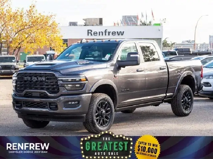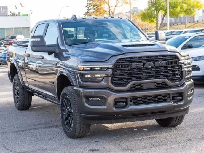 - NIGHT EDITION -inc: Wheels: 20 x 8.0 Night Edition Black Aluminum Black Exterior Badging Body-Colour Grille Surround Black Interior Accents Sport Performance Hood Black Limited Grille Black Wheel Centre Hub,TRANSMISSION: 8-SPEED TORQUEFLITE AUTOMATIC,POWER SUNROOF,5TH WHEEL/GOOSENECK TOWING PREP GROUP -inc: Pickup Box,GRANITE CRYSTAL METALLIC,WHEELS: 20 X 8.0 NIGHT EDITION BLACK ALUMINUM,QUICK ORDER PACKAGE 24M LIMITED -inc: Engine: 6.7L Cummins I-6 HO Turbo Diesel Transmission: 8-Speed TorqueFlite Automatic,LIMITED LEVEL 1 EQUIPMENT GROUP -inc: Active Lane Management System Centre Stop Lamp w/Cargo Camera Surround View Camera System Power Deployable Running Boards Traffic Sign Recognition Trailer Tire Pressure Monitoring Adaptive Steering System MOPAR Spray-In Bedliner Anti-Spin Differential Rear Axle Drowsy Driver Detection Trailer Reverse Guidance Digital Rearview Mirror,CLEARANCE LAMPS,IP-MOUNTED AUXILIARY SWITCHES -inc: Dash Pass-Thru Wire Circuits,ENGINE: 6.7L CUMMINS I-6 HO TURBO DIESEL -inc: Selective Catalytic Reduction (Urea) Dual 730-Amp Maintenance-Free Batteries Cummins Turbo Diesel Badge Heavy-Duty Engine Cooling Diesel Exhaust Brake Supplemental Heater 3.42 Axle Ratio Front Bumper Sight Shields Capless Fuel-Filler GVWR: 5 007 kgs (11 040 lbs) MOPAR Winter Front Grille Cover,BLACK ULTRA PREMIUM LEATHER-TRIMMED SEATS,3.42 AXLE RATIO,GVWR: 5 007 KGS (11 040 LBS),Power Folding Mirrors,Aluminum Wheels,Premium Sound System,Keyless Entry,Automatic Highbeams,Bluetooth Connection,MP3 Capability,HD Radio,Fog Lamps,Automatic Headlights,Tires - Front All-Terrain,Auxiliary Audio Input,4-Wheel Disc Brakes,AM/FM Stereo,Intermittent Wipers,Power Steering,ABS,Brake Assist,Rain Sensing Wipers,Conventional Spare Tire,Tow Hooks,Variable Speed Intermittent Wipers,Heated Mirrors,Power Door Locks,Four Wheel Drive,Running Boards/Side Steps,Daytime Running Lights,Privacy Glass,Steering Wheel Audio Controls,Power Mirror(s),Premium Sound System,Satellite Radio,Power Door Locks,Tow Hitch,Rear Defrost,Integrated Turn Signal Mirrors,Requires Subscription,LED Headlights,Tires - Rear All-Terrain,Navigation System,Heated Front Seat(s),Keyless Start,Passenger Illuminated Visor Mirror,Power Driver Seat,Bucket Seats,Requires Subscription,Smart Device Integration,A/C,Multi-Zone A/C,Driver Illuminated Vanity Mirror,Driver Vanity Mirror,Climate Control,Remote Engine Start,Woodgrain Interior Trim,Keyless Start,Power Door Locks,Bluetooth Connection,Cruise Control,Navigation System,WiFi Hotspot,Smart Device Integration,Pass-Through Rear Seat,Adaptive Cruise Control,Leather Seats,Power Passenger Seat,Heated Rear Seat(s),Power Windows,Rear Bench Seat,Trip Computer,Driver Adjustable Lumbar,Keyless Entry,Floor Mats,Seat Memory,Adjustable Steering Wheel,Mirror Memory,Heated Steering Wheel,Auto-Dimming Rearview Mirror,Leather Steering Wheel,Remote Engine Start,Universal Garage Door Opener,Passenger Vanity Mirror,Passenger Adjustable Lumbar,Child Safety Locks,Rear Parking Aid,Power Windows,Cross-Traffic Alert,Trip Computer,Tire Pressure Monitor,Heated Front Seat(s),Adjustable Pedals,Cooled Front Seat(s),Blind Spot Monitor,Front Head Air Bag,Passenger Air Bag Sensor,Front Side Air Bag,Rear Head Air Bag,Front Collision Mitigation,Back-Up Camera,Security System,Stability Control,Passenger Air Bag,Traction Control,Power Door Locks,Immobilizer,Driver Air Bag,Traction Control