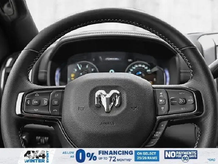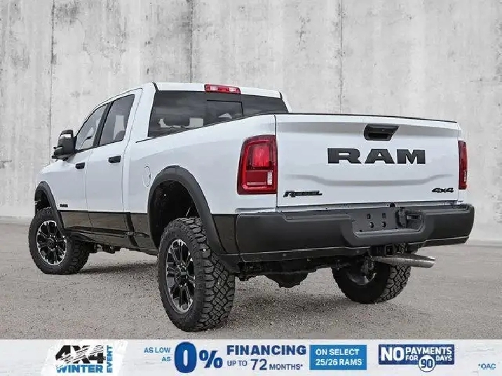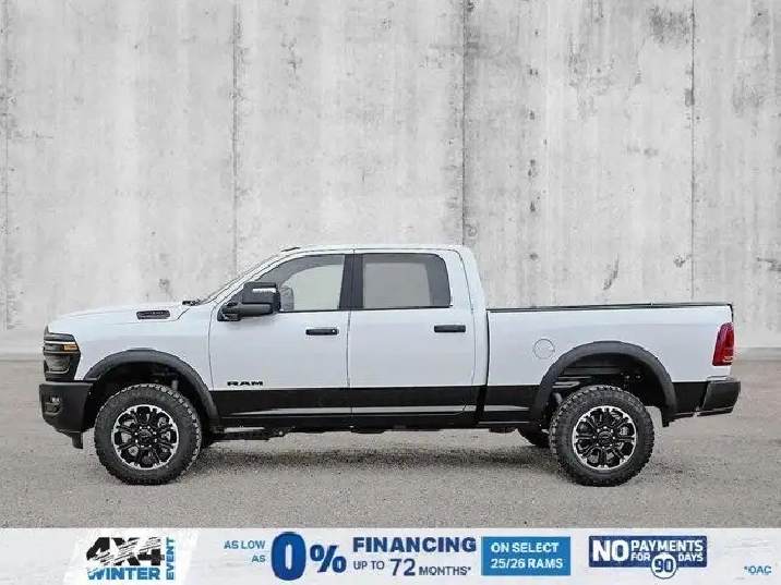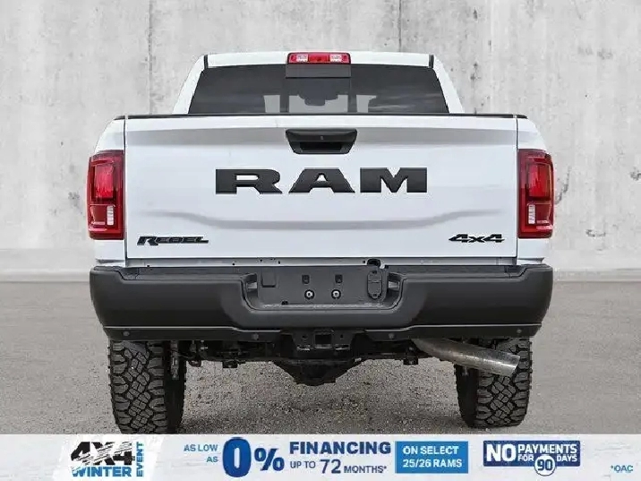 - LOWER TWO-TONE PAINT,REBEL LEVEL 1 EQUIPMENT GROUP -inc: Rain-Sensing Windshield Wipers Power Adjustable Pedals w/Memory Body-Colour Door Handles Auto Power Folding Mirrors Overhead LED Lamps Auto-Dimming Exterior Driver Mirror MOPAR Rock Rails w/Step Pad Premium Overhead Console Forward & Reverse Utility Lights 9 Alpine Speakers w/Subwoofer Power Heated Folding Telescopic Mirrors w/Memory Sport Performance Hood LED Interior Lighting Remote Proximity Keyless Entry Automatic High-Beam Headlamp Control LED Dome Lamp w/On/Off Switch Universal Garage Door Opener Exterior Mirrors w/Memory Settings MOPAR Front & Rear All-Weather Floor Mats Auto-Dimming Exterior Passenger Mirror Sun Visors w/Illuminated Vanity Mirrors Exterior Mirrors w/Auto-Adjust In Reverse,BRIGHT WHITE,MOPAR FRONT & REAR ALL-WEATHER FLOOR MATS,ENGINE: 6.4L V8 HEMI HD (STD),SPORT PERFORMANCE HOOD,DIAMOND BLACK CRYSTAL PEARL,TRANSMISSION: 8-SPEED AUTOMATIC (8HP75-LCV) (STD),IP-MOUNTED AUXILIARY SWITCHES -inc: Dash Pass-Thru Wire Circuits,MOPAR ROCK RAILS W/STEP PAD,3.73 REAR AXLE RATIO (STD),BED CONVENIENCE GROUP -inc: MOPAR Spray-In Bedliner LED Bed Lighting,GVWR: 4 490 KGS (9 900 LBS),BLACK LEATHER-FACED BUCKET SEATS (PL) -inc: Bucket Seats Dual Wireless Charging Pad Power 2-Way Passenger Lumbar Adjust Front Ventilated Seats 115-Volt Auxiliary Power Outlet - Rear Media Hub w/2 USB Charging Ports 2nd Row Heated Seats Heated Steering Wheel Power 8-Way Adjust Front Passenger Seat Front Seatback Map Pockets Radio/Driver Seat/Mirrors/Pedals Memory Full Length Upgraded Floor Console,QUICK ORDER PACKAGE 2UR REBEL -inc: Engine: 6.4L V8 HEMI HD Transmission: 8-Speed Automatic (8HP75-LCV),Brake Assist,Four Wheel Drive,Power Steering,Aluminum Wheels,Locking/Limited Slip Differential,Locking/Limited Slip Differential,ABS,4-Wheel Disc Brakes,Tow Hitch,LED Headlights,Tow Hooks,Power Folding Mirrors,Power Door Locks,Intermittent Wipers,Heated Mirrors,Tires - Rear All-Terrain,Rear Defrost,Tires - Front All-Terrain,Automatic Headlights,Fog Lamps,Power Mirror(s),Integrated Turn Signal Mirrors,Privacy Glass,Conventional Spare Tire,Variable Speed Intermittent Wipers,Daytime Running Lights,Bluetooth Connection,HD Radio,Requires Subscription,AM/FM Stereo,Satellite Radio,Requires Subscription,MP3 Capability,Navigation System,Traction Control,Auxiliary Audio Input,Steering Wheel Audio Controls,HD Radio,Satellite Radio,Floor Mats,Cross-Traffic Alert,Adjustable Pedals,WiFi Hotspot,Adaptive Cruise Control,Back-Up Camera,Traction Control,Front Head Air Bag,Bluetooth Connection,Child Safety Locks,Leather Steering Wheel,Tire Pressure Monitor,Blind Spot Monitor,Front Collision Mitigation,Power Driver Seat,Driver Air Bag,Pass-Through Rear Seat,Climate Control,Stability Control,Security System,Passenger Air Bag,Power Door Locks,Auto-Dimming Rearview Mirror,Trip Computer,Passenger Air Bag Sensor,Immobilizer,Rear Bench Seat,Navigation System,Heated Steering Wheel,Satellite Radio,Driver Adjustable Lumbar,Keyless Entry,Power Windows,Passenger Illuminated Visor Mirror,Passenger Vanity Mirror,Rear Parking Aid,Cloth Seats,Multi-Zone A/C,Adjustable Steering Wheel,Smart Device Integration,Keyless Start,Heated Front Seat(s),Smart Device Integration,Cruise Control,Power Windows,Split Bench Seat,Power Door Locks,Requires Subscription,Trip Computer,Rear Head Air Bag,Front Side Air Bag,A/C