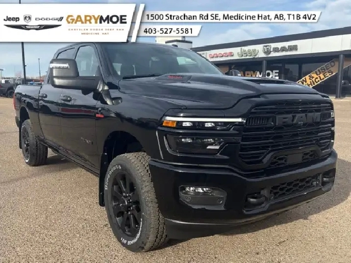 Introducing the powerful and sophisticated 2026 Ram 3500 Laramie in an alluring black finish equipped with a 4x4 drivetrain. This robust truck is designed for those who demand superior handling and rugged performance. Beneath its hood lies the legendary 6.7L Cummins I-6 HO Turbo Diesel engine paired with a seamless 8-Speed TorqueFlite Automatic transmission, ensuring reliability and impressive torque at every turn.
